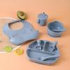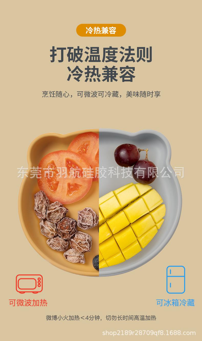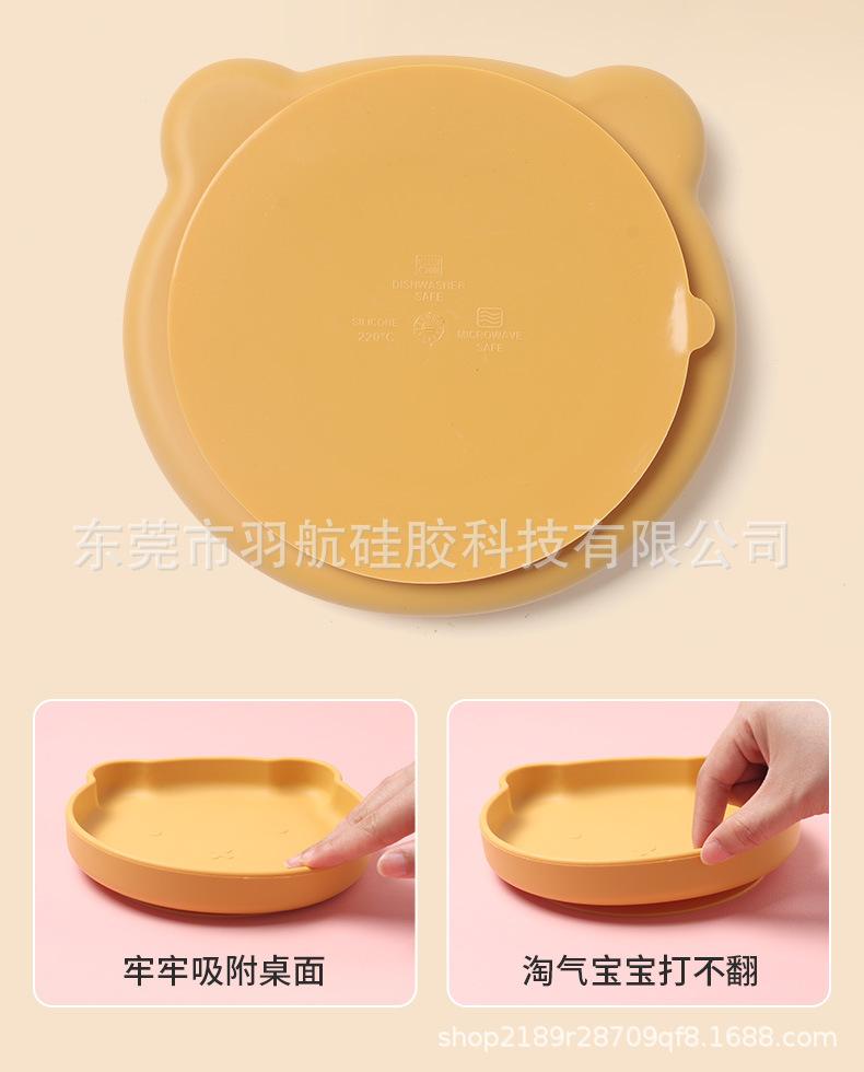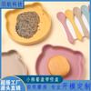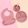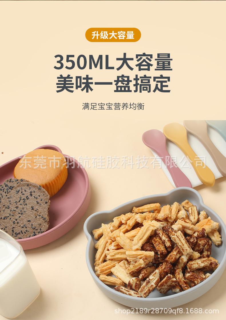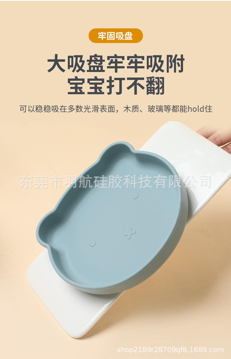 Plato de Cena de Silicona de Oso Set de Vajilla Complementaria para Comida de Bebé Cuchara Tenedor de Silicona Suministros para Bebé Set de Vajilla de Silicona para Niños