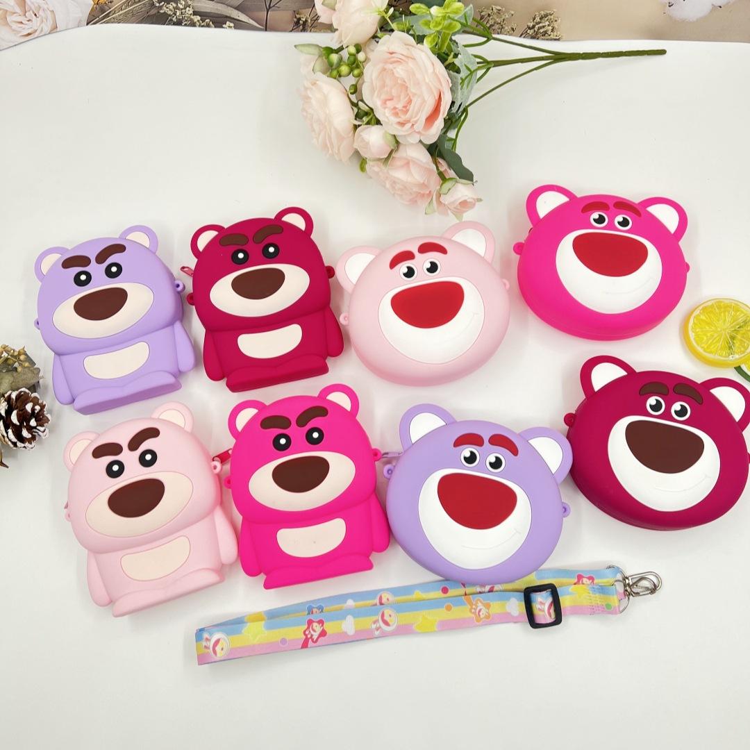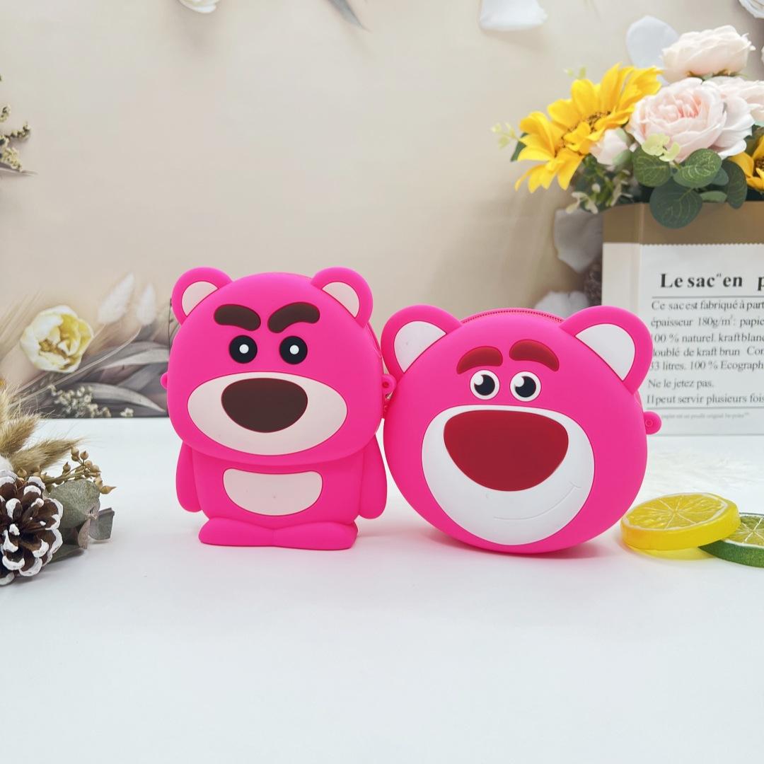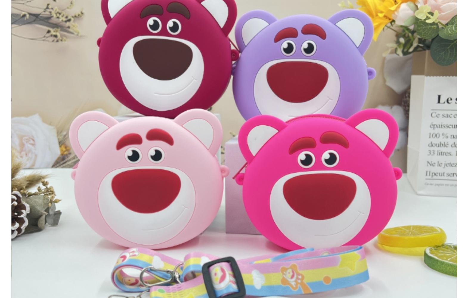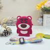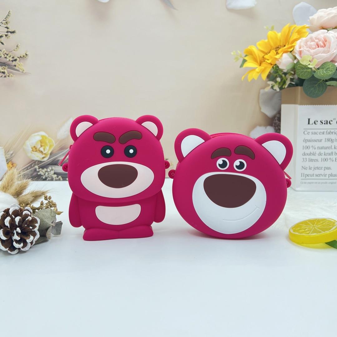 Bolso infantil con diseño de oso de fresa, monedero de silicona con dibujos animados, llavero, bolso de hombro, linda cartera pequeña, bolso femenino al por mayor