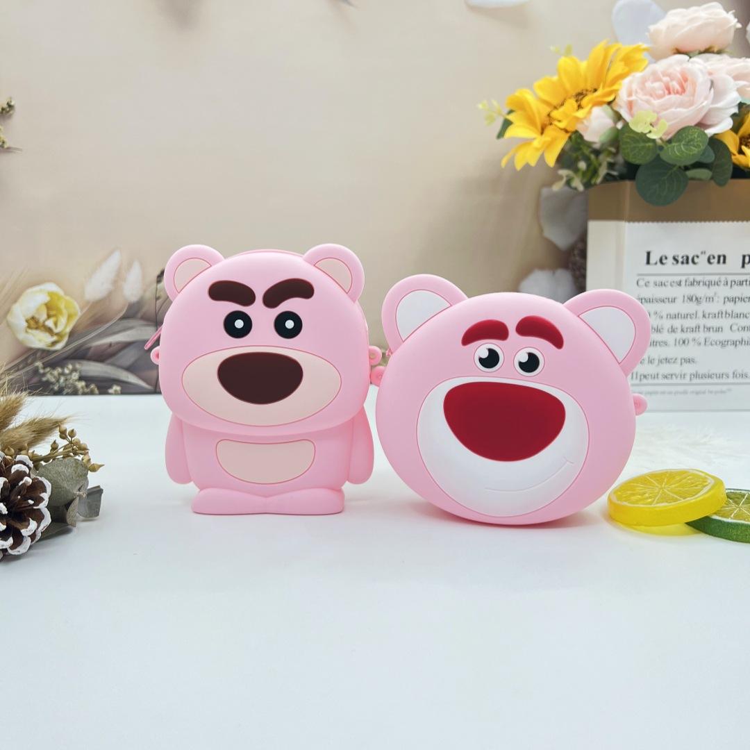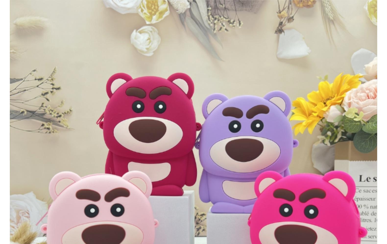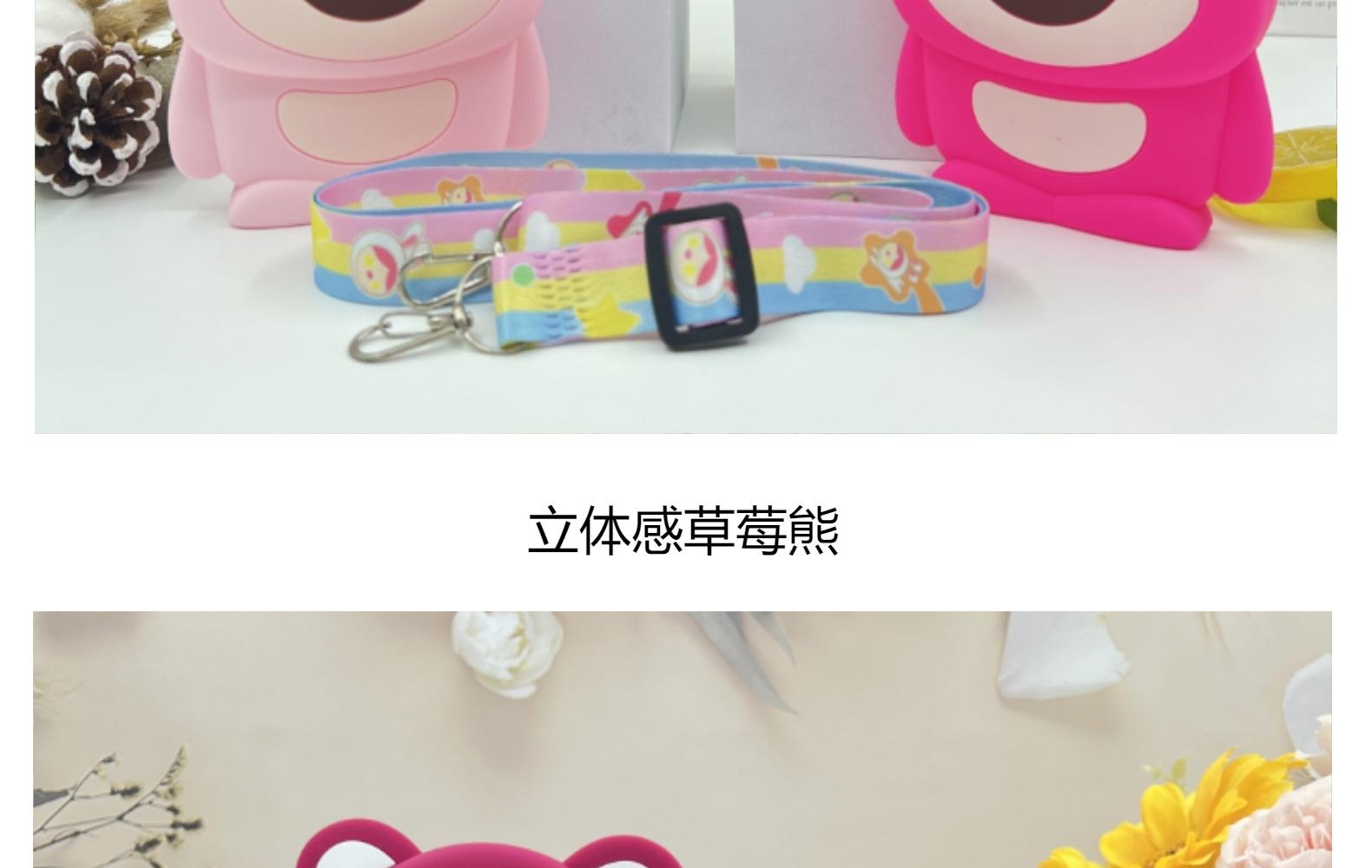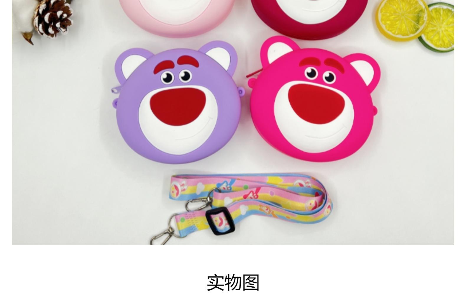 Bolso infantil con diseño de oso de fresa, monedero de silicona con dibujos animados, llavero, bolso de hombro, linda cartera pequeña, bolso femenino al por mayor