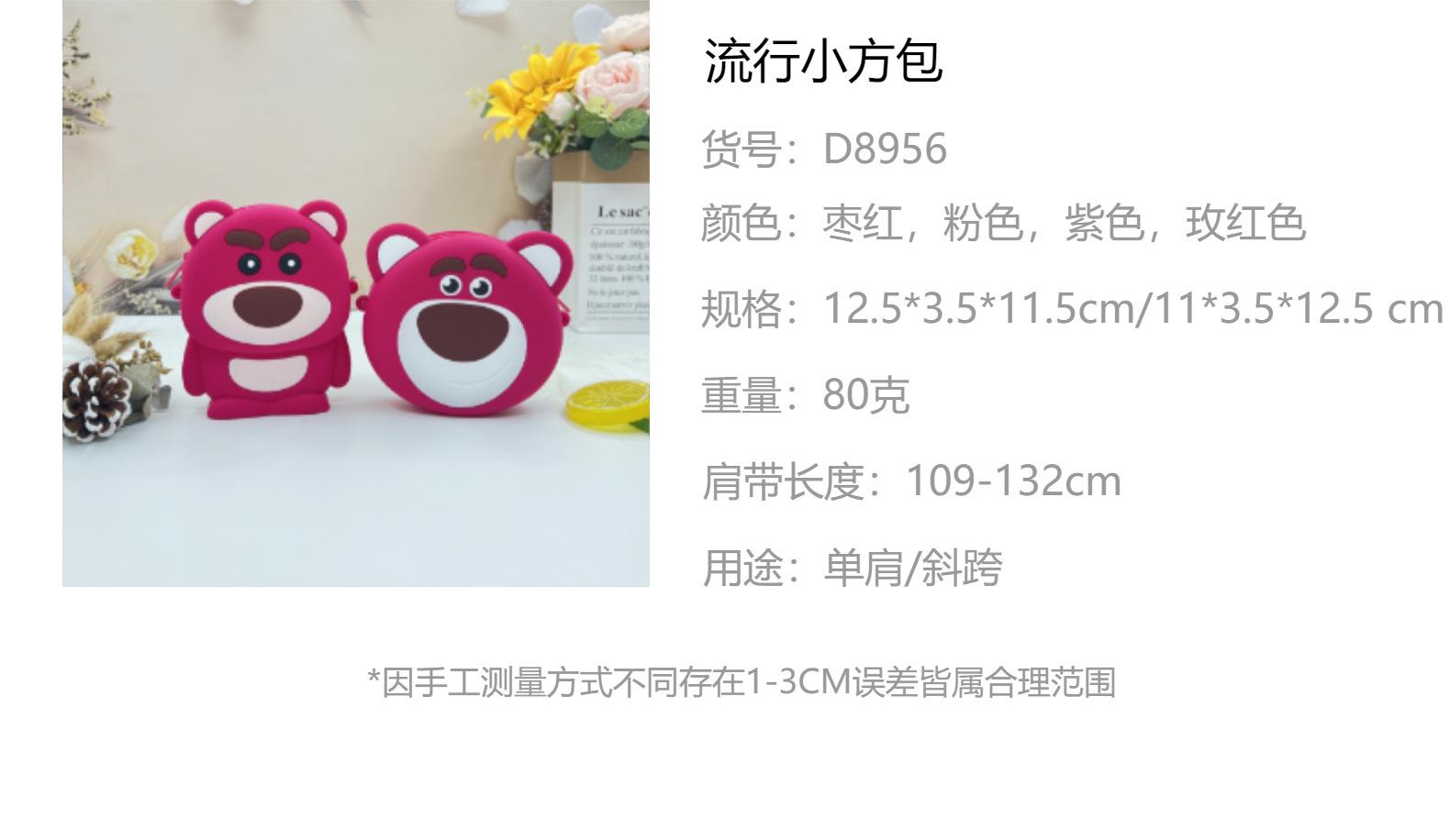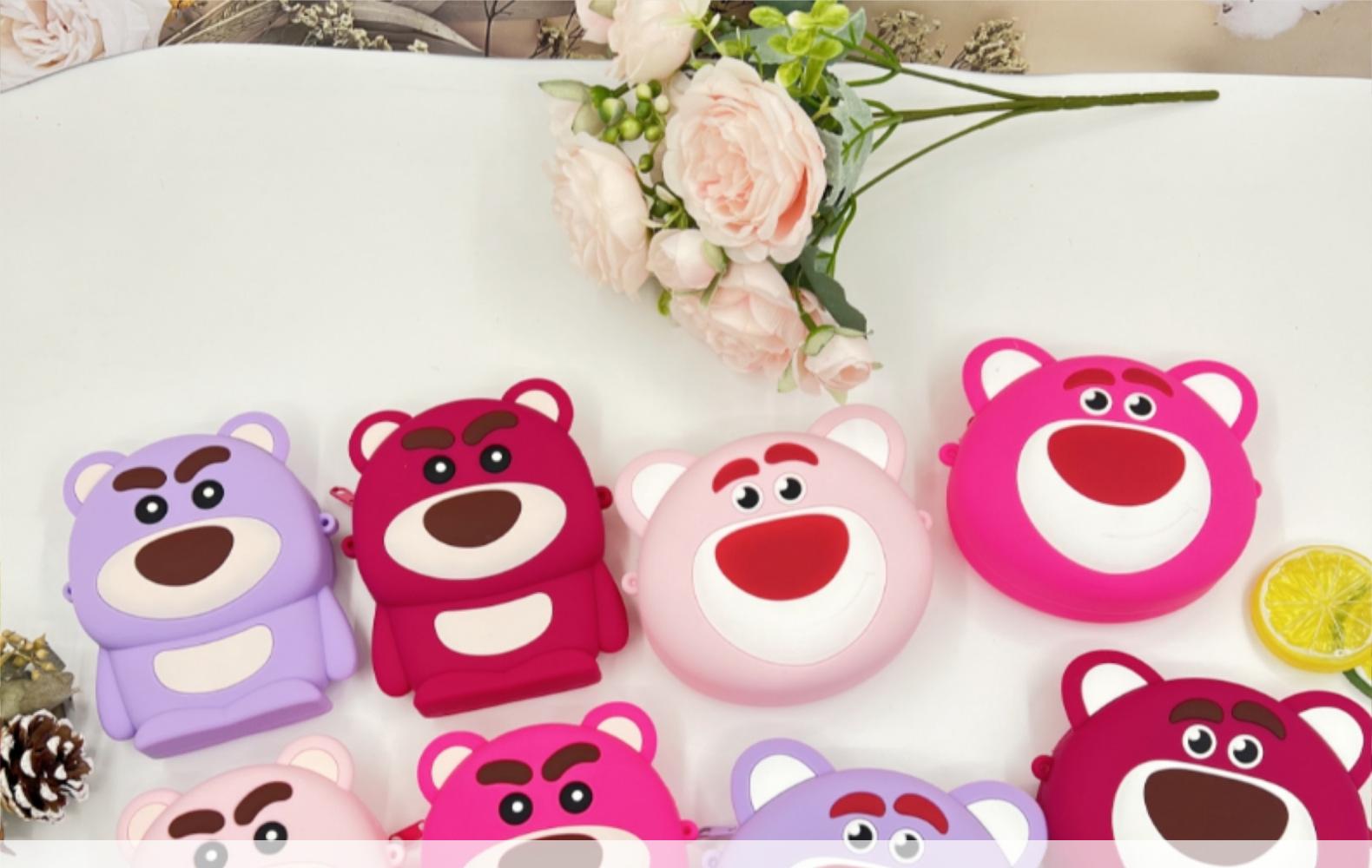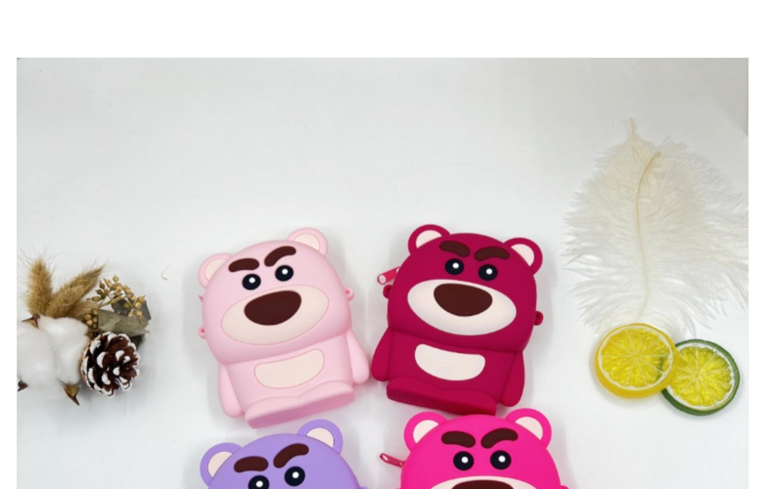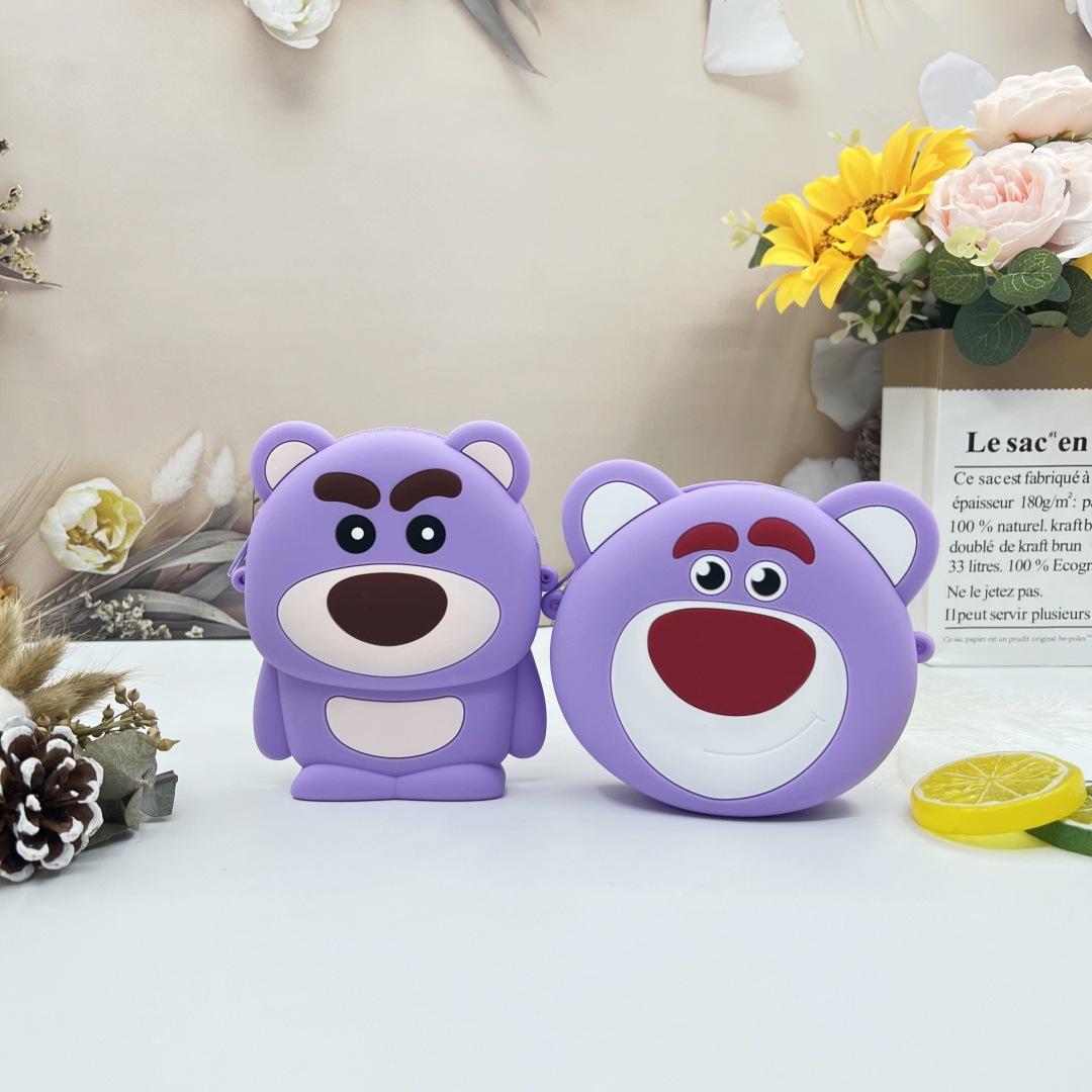 Bolso infantil con diseño de oso de fresa, monedero de silicona con dibujos animados, llavero, bolso de hombro, linda cartera pequeña, bolso femenino al por mayor