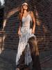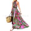 Verano 2025 Nuevo Comercio Exterior Transfronterizo Vestido Sexy Estampado con Halter Europeo y Americano para Mujer con Tejido Elástico en Cuatro Direcciones