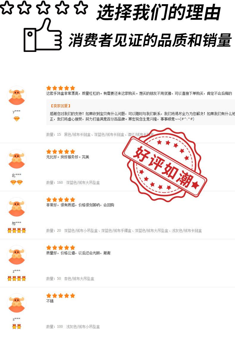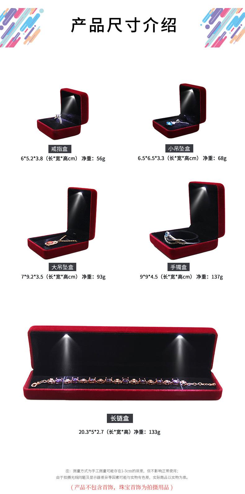 Bracelet box 9*9*4.5cm, Long chain box 20.3*5*2.7cm, Ring box 6*5.2*3.8cm, Small pendant box 6.5*6.5*3.3cm, La...