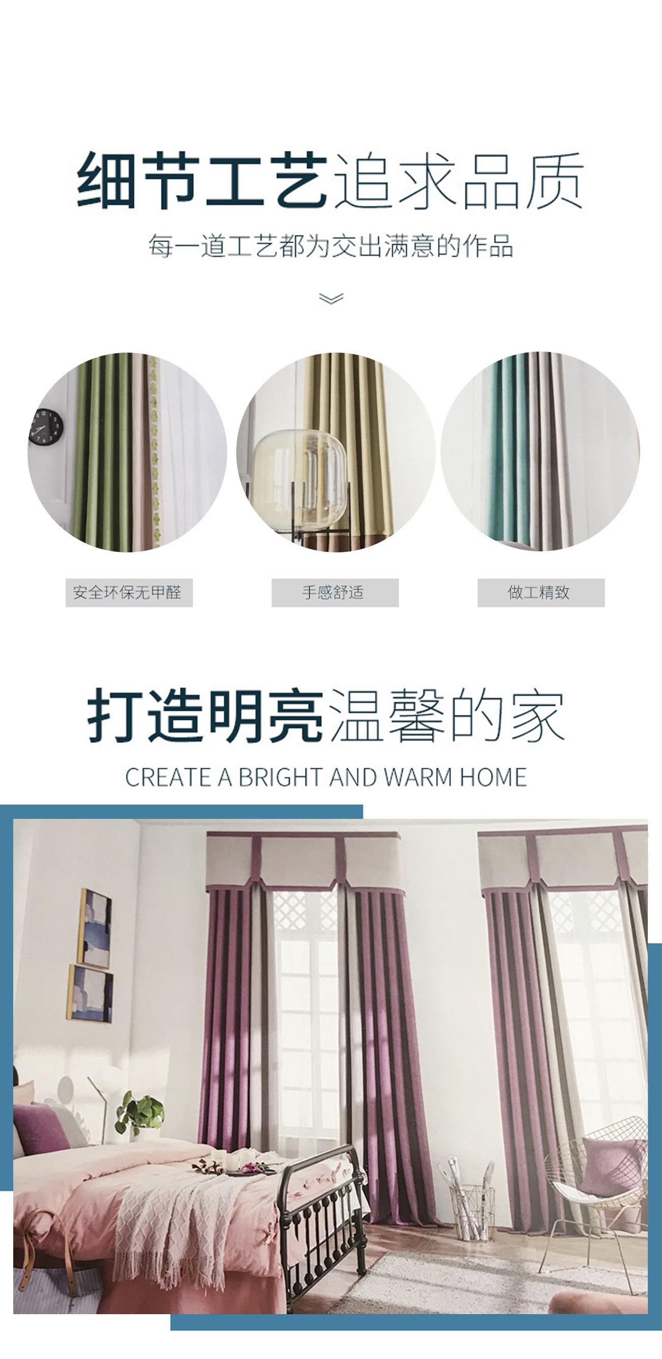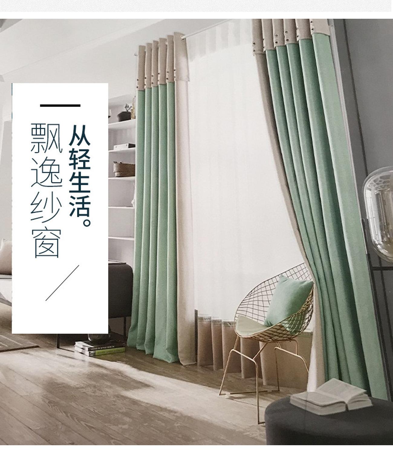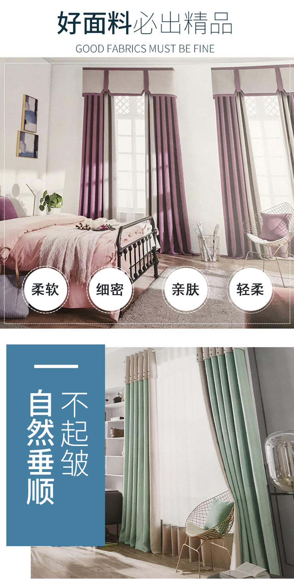 Paneles de Cortina Acabados al por Mayor con Material de Lino Empalmado, Diseño Simple de Estilo Americano para Dormitorio, Balcón y Estudio, Tejido de Cortina de Alta Opacidad con Artesanía de Empalme