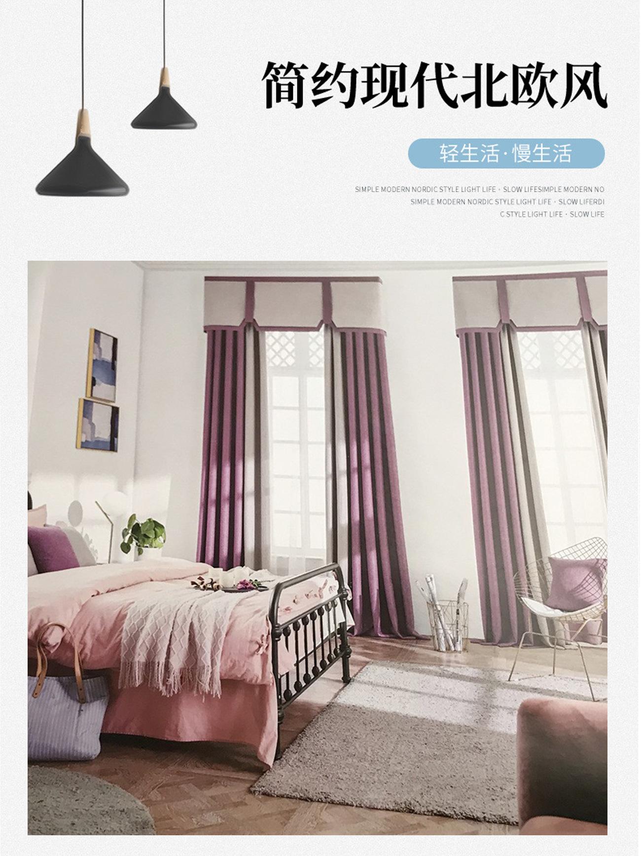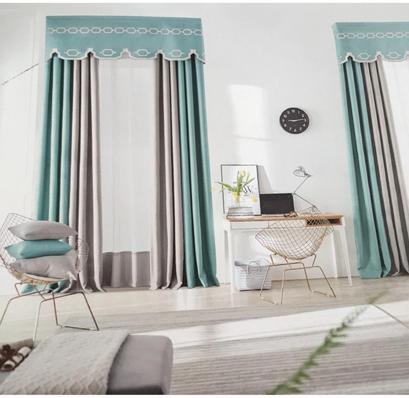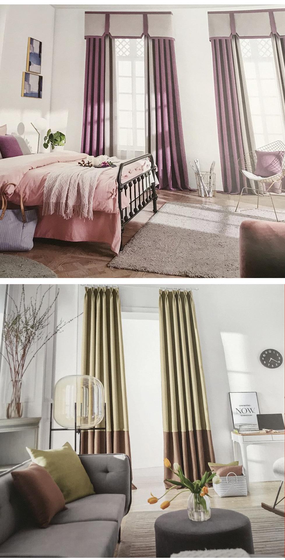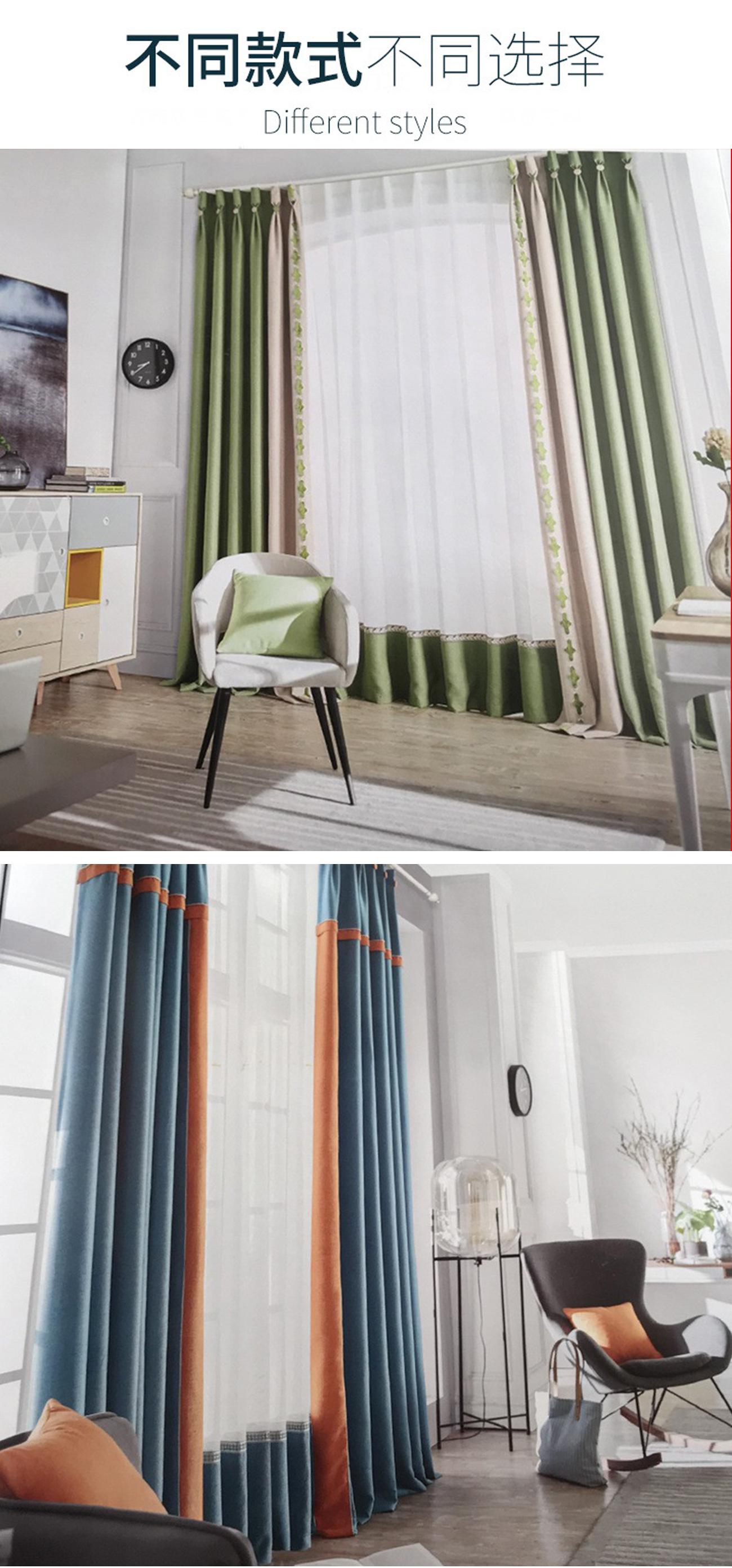 Paneles de Cortina Acabados al por Mayor con Material de Lino Empalmado, Diseño Simple de Estilo Americano para Dormitorio, Balcón y Estudio, Tejido de Cortina de Alta Opacidad con Artesanía de Empalme