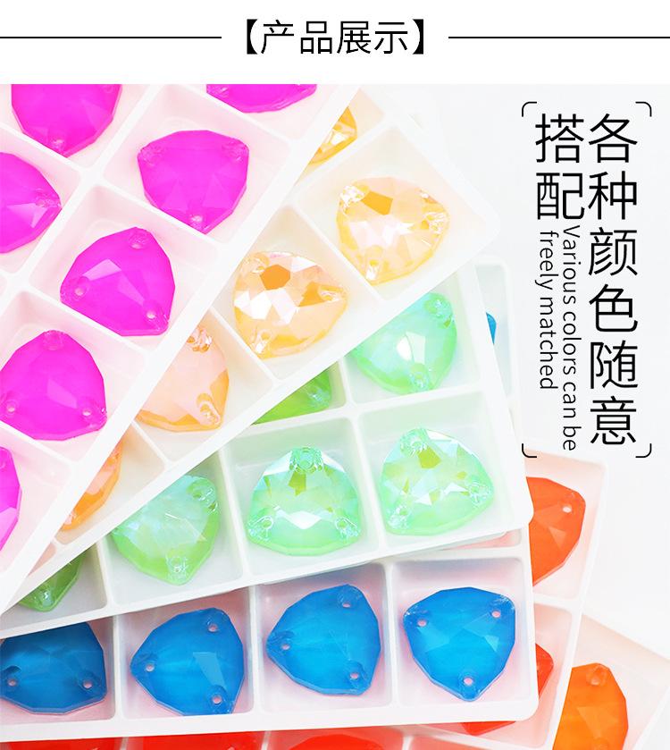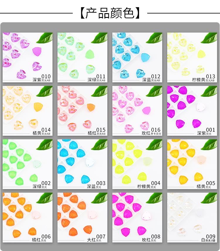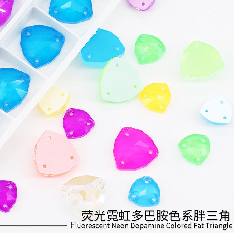 Transfronterizo Fluorescente Cosido a Mano Diamante Triángulo Gordo Neón Dopamina Vidrio Fondo Plano Accesorios DIY Ropa Accesorios de Joyería