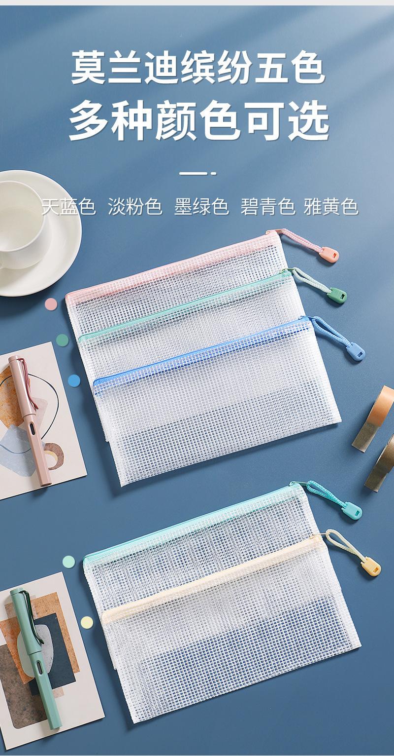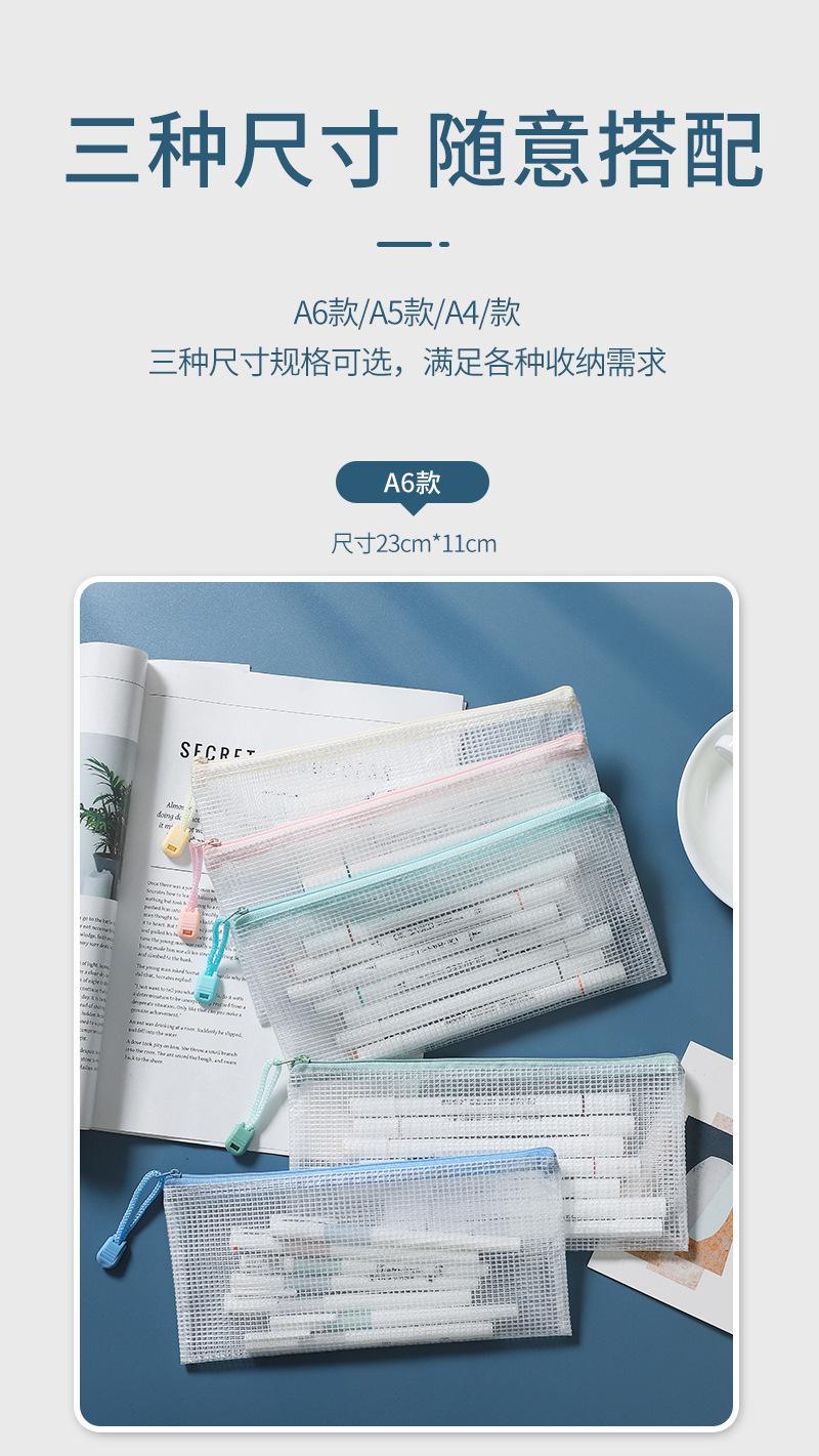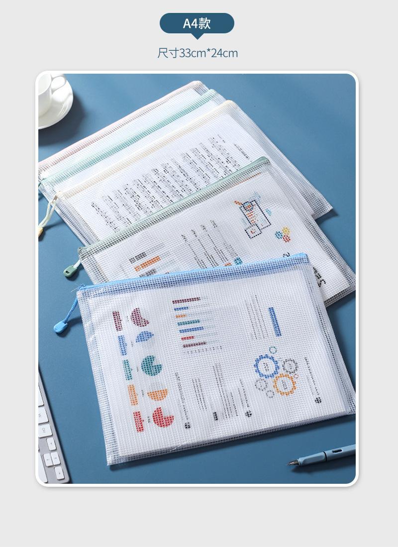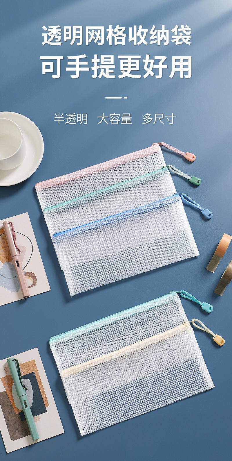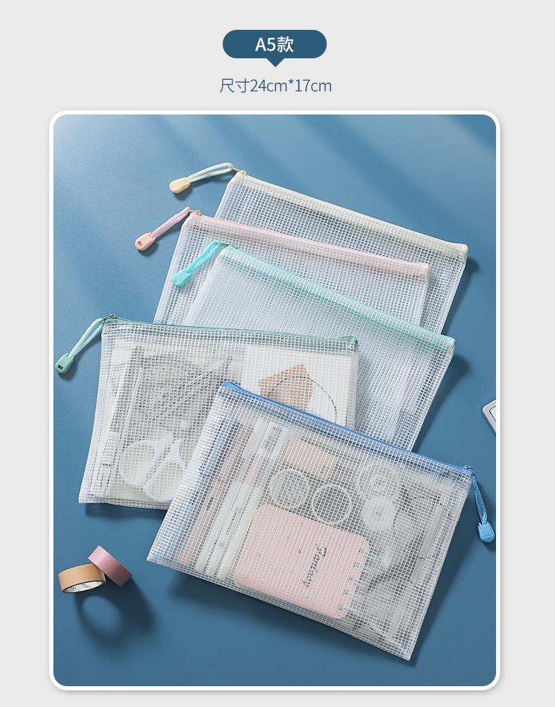 Bolsa de malla transparente para archivos, portátil, de gran capacidad, de PVC con cremallera, tamaño A4/A5, sencilla, para guardar papelería.