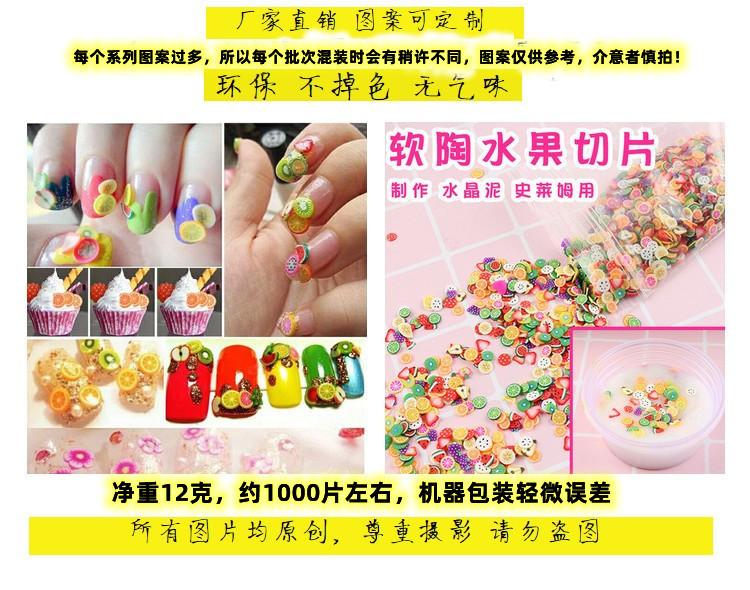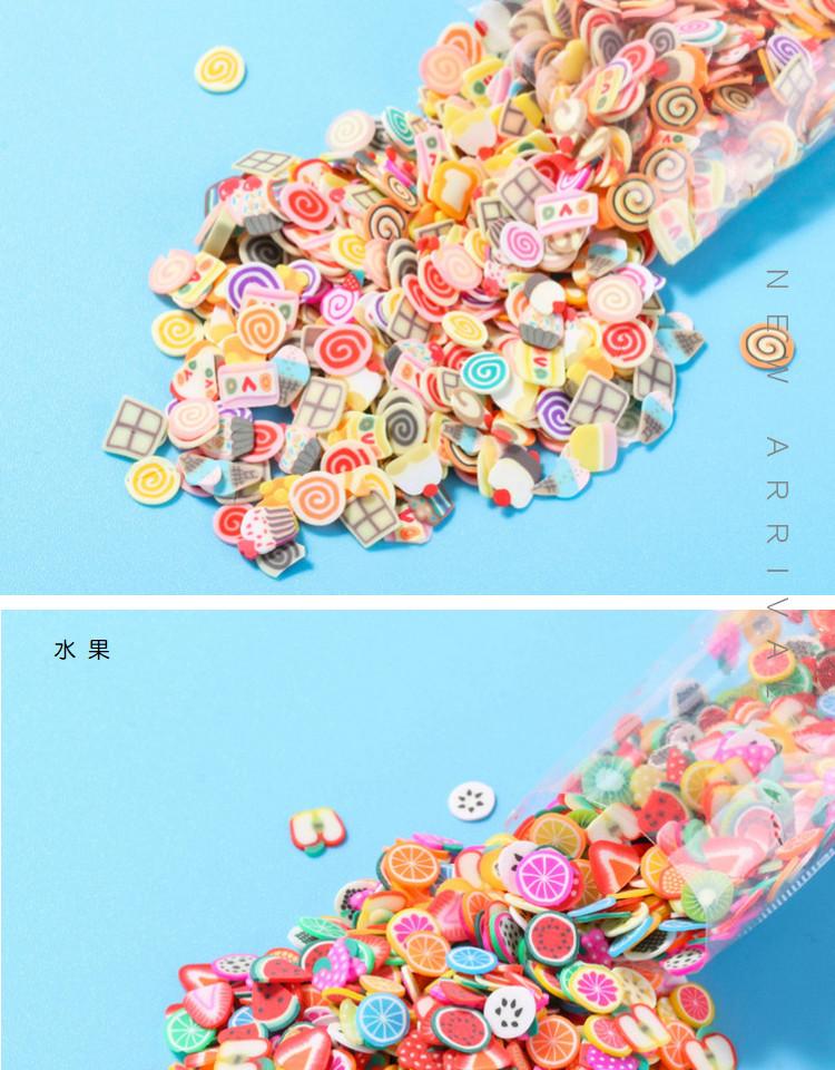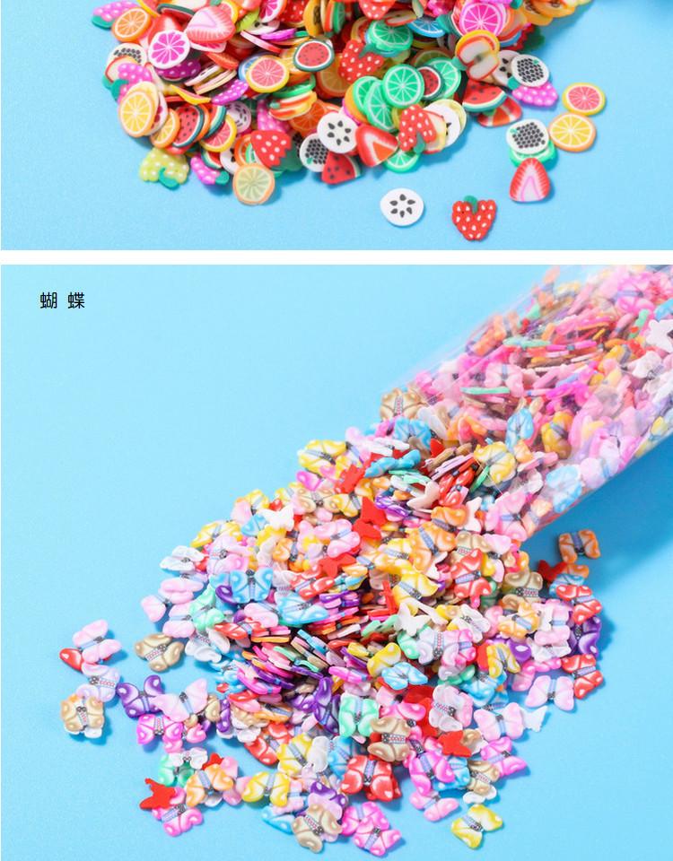 Paquete de 1000 adornos para decoración de uñas, cerámica blanda, frutas en rodajas, cristal, barro, slime, relleno, hecho a mano, material para bricolaje.