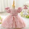 Vestido de bautizo con cola para bebés y niños pequeños, vestido de malla con lazo para banquete de primer cumpleaños de bebé, vestido de princesa plisado para niña de las flores de boda