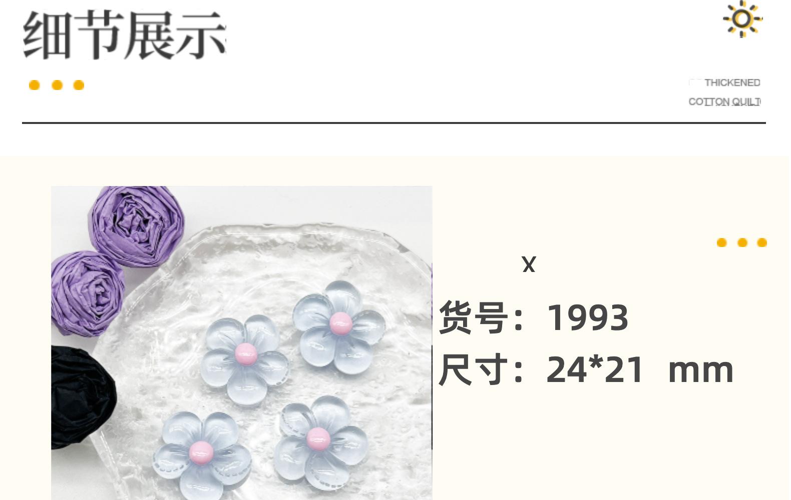 Nuevos accesorios de resina para manualidades con flores de colores transparentes, funda para teléfono móvil, tocado, pinza para el pelo, decoración, parche, material al por mayor