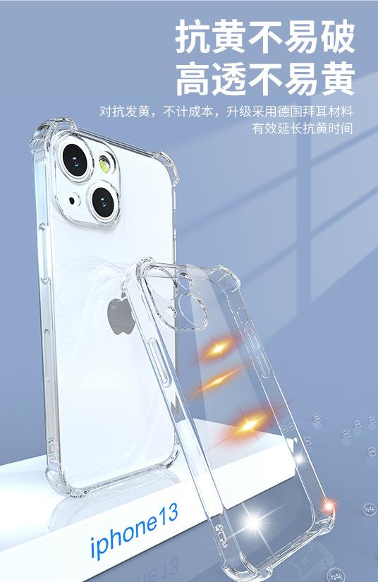 Adecuado para Funda de Teléfono Móvil Apple 15, Cubierta Protectora Transparente para iPhone 14, 13 Bolsa de Aire Anticaídas Engrosada en las Cuatro Esquinas, 11 Suave y Simple