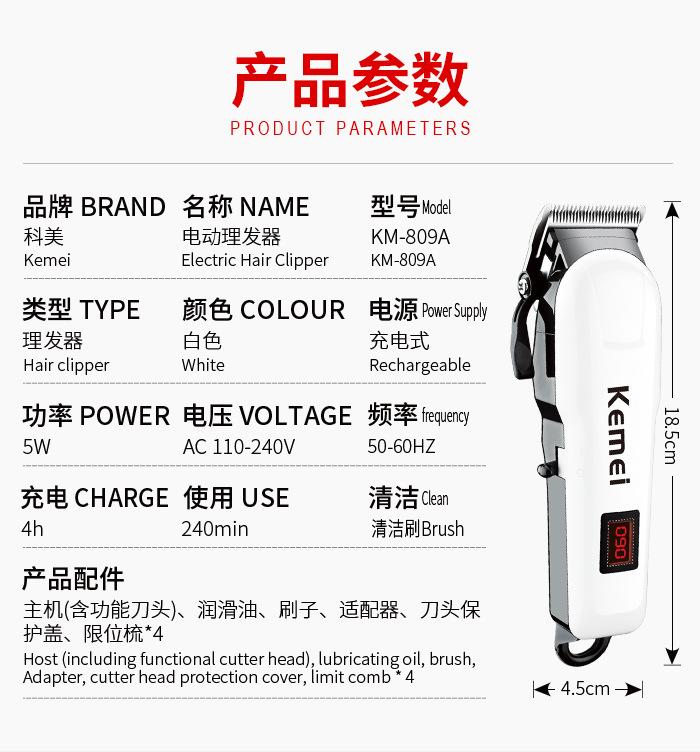 Kemei Cortadora de Pelo Eléctrica Km809A Transfronteriza Cabeza al Aceite Grabado Cortadora Eléctrica Pantalla Digital Larga Duración Afeitadora Eléctrica