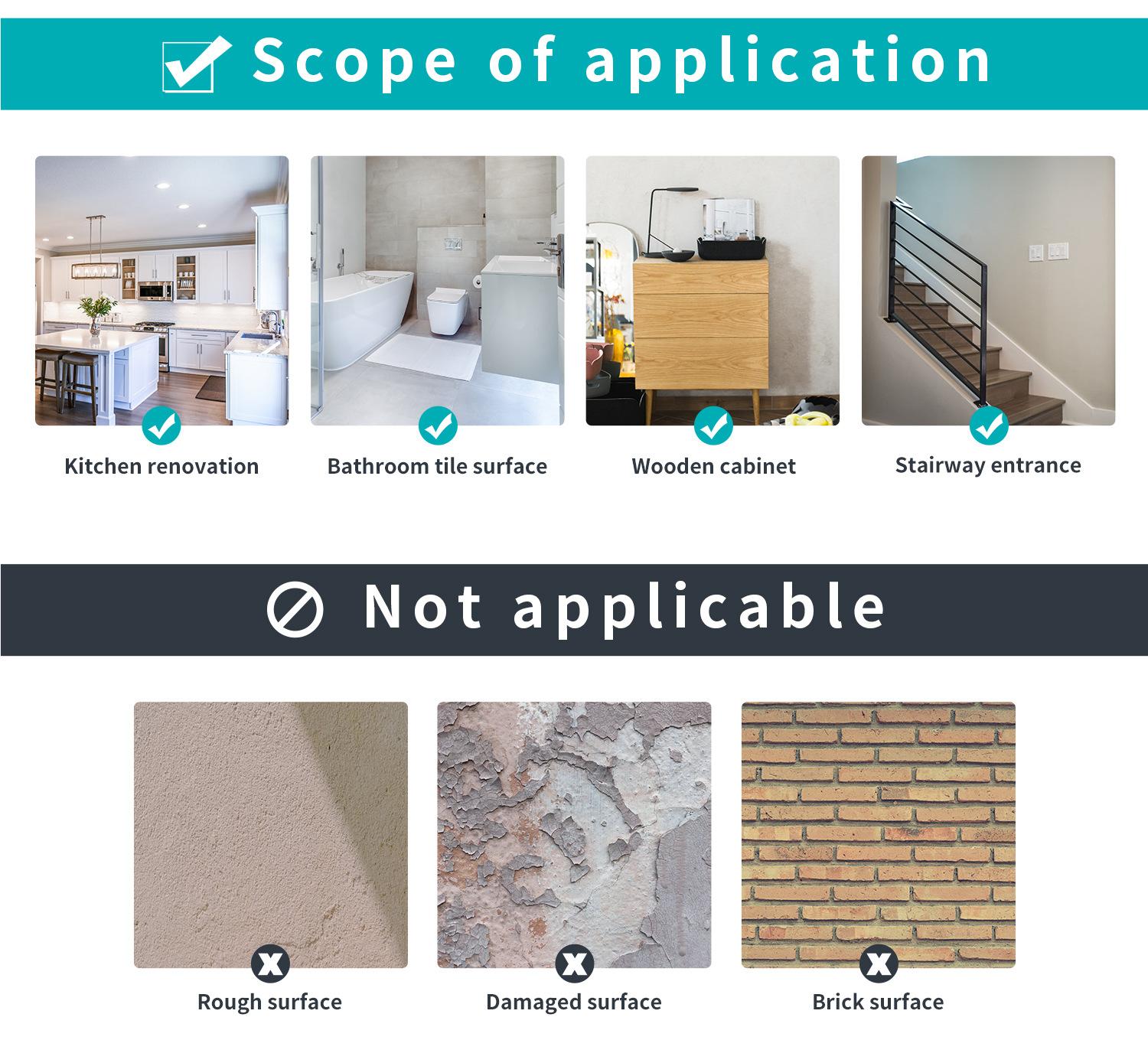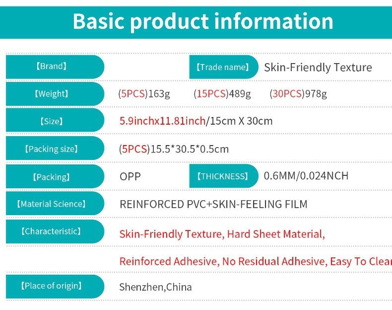 Características: La superficie está hecha de película con tacto de piel, textura agradable a la piel, impermeable, a prueba de aceite, resistente a los arañazos y no reflectante, con una lámina dura engrosada en el medio y un respaldo adhesivo reforzado, que no es fácil de caerse y no deja pegamento al desmontarse.