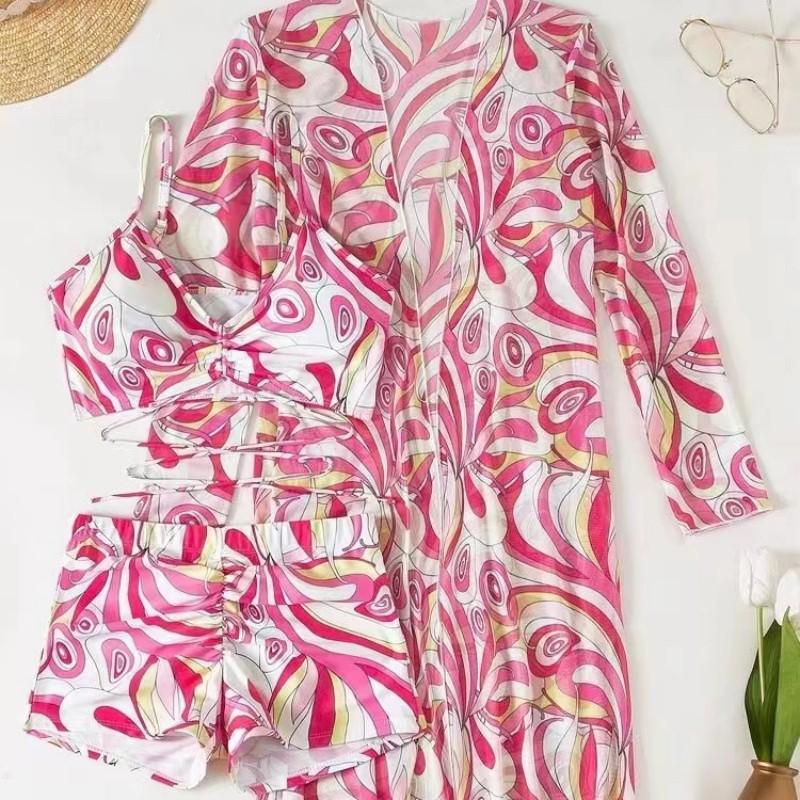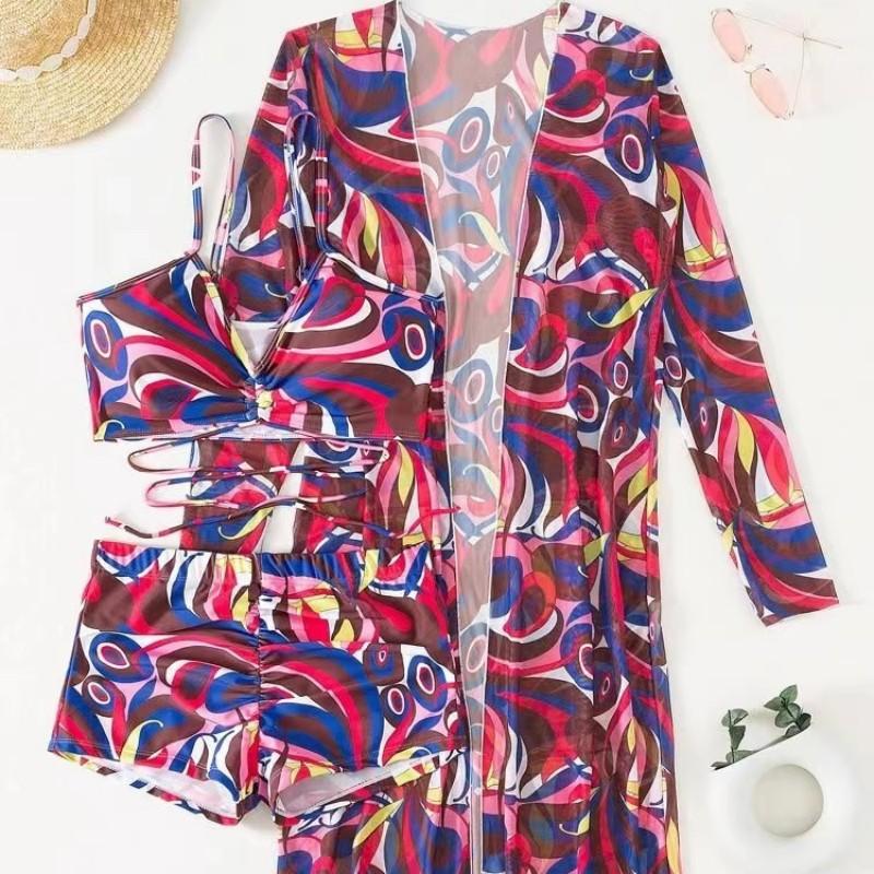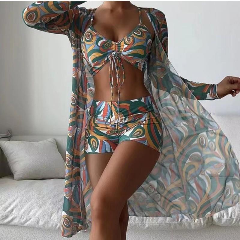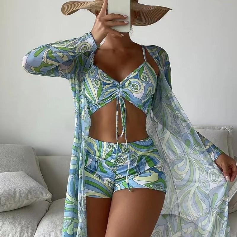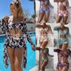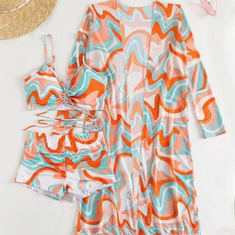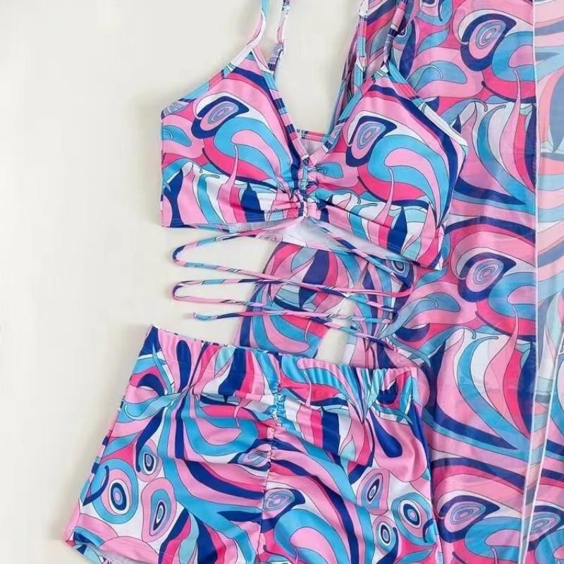 Traje de baño europeo y americano para damas, comercio exterior 2025, nuevo bikini dividido de tres piezas, traje de baño sexy de cintura alta, fábrica transfronteriza