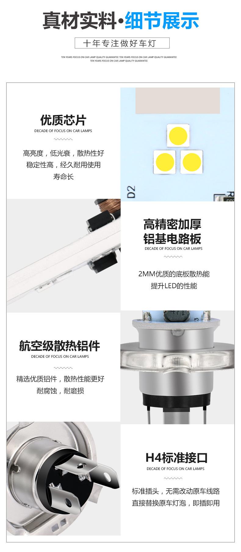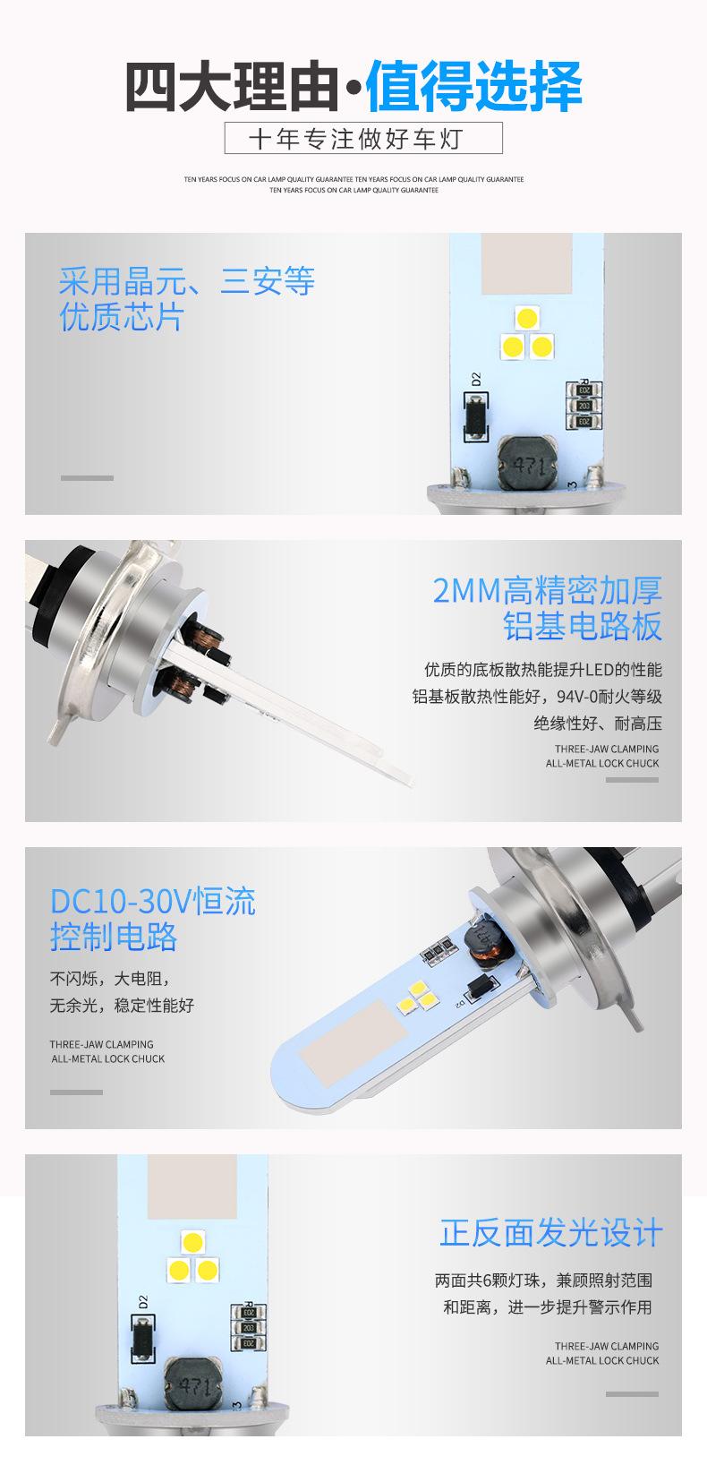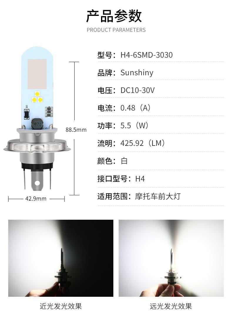 Faro de Motocicleta H4 Bombilla LED 3030 6W Luz Antiniebla Modificada 6Smd Doble Cara Tres Garras Luz para Coche Eléctrico
