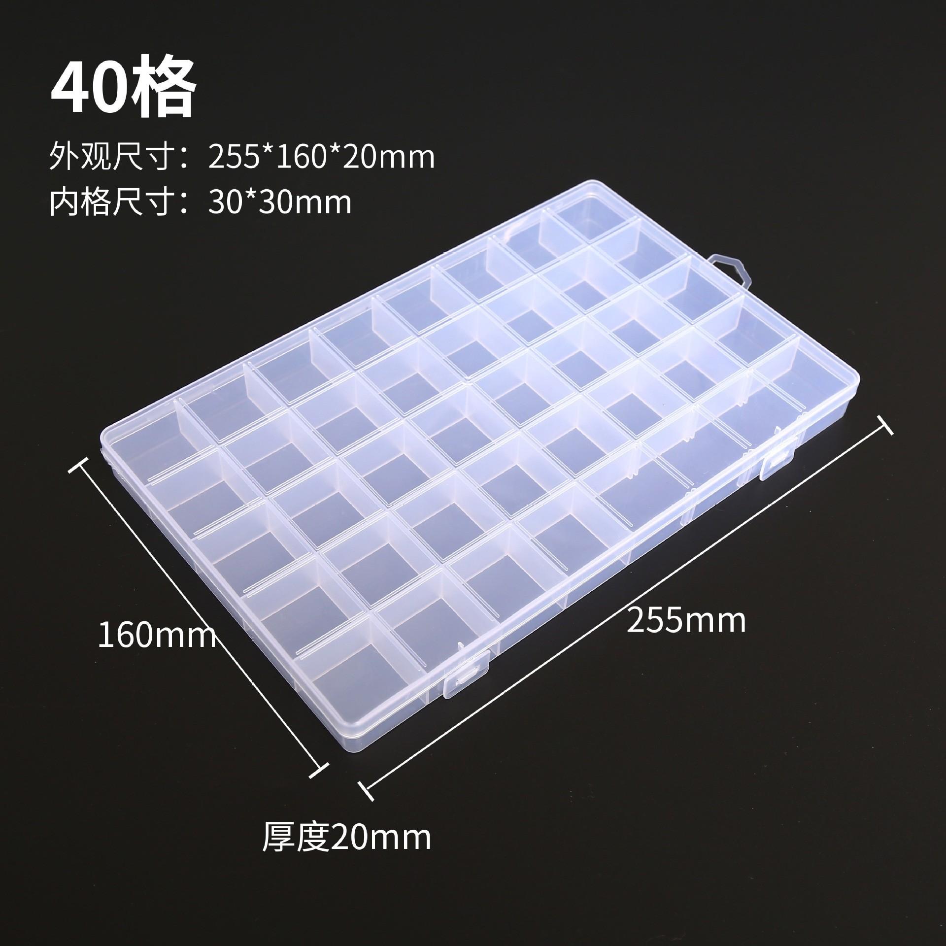 Caja de almacenamiento de 40 rejillas 36 rejillas 32 rejillas 54 rejillas caja de plástico transparente como banda de goma sub-empaquetado rejilla a prueba de polvo caja de accesorios de acabado