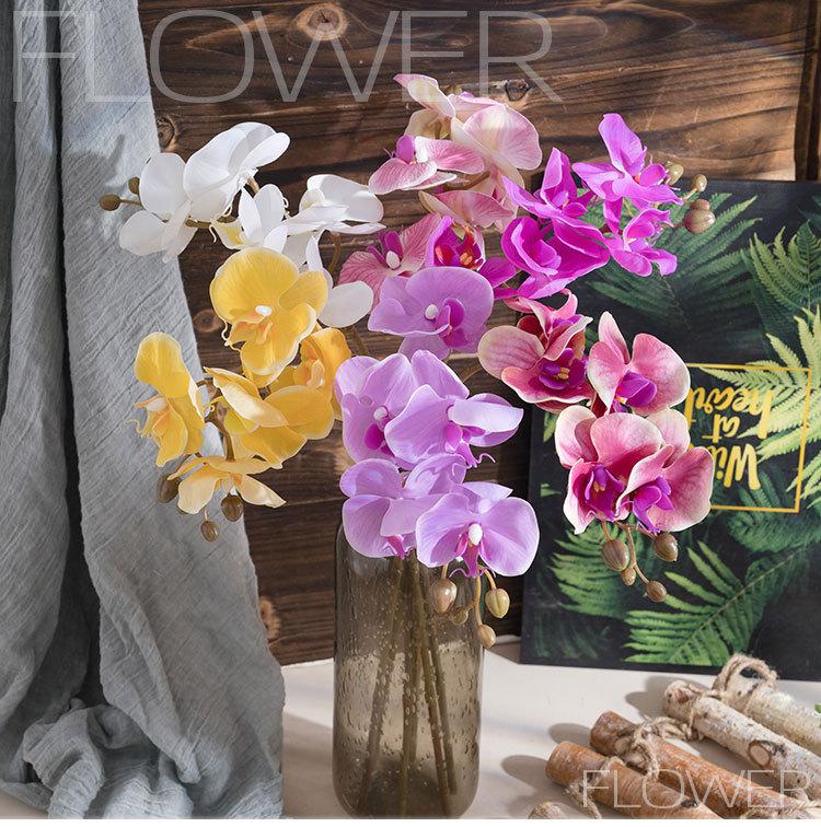 Phalaenopsis hidratante de nueve cabezas Yuanqi transfronteriza, tacto suave, venta al por mayor, flor artificial para decoración del hogar, boda, MW31008