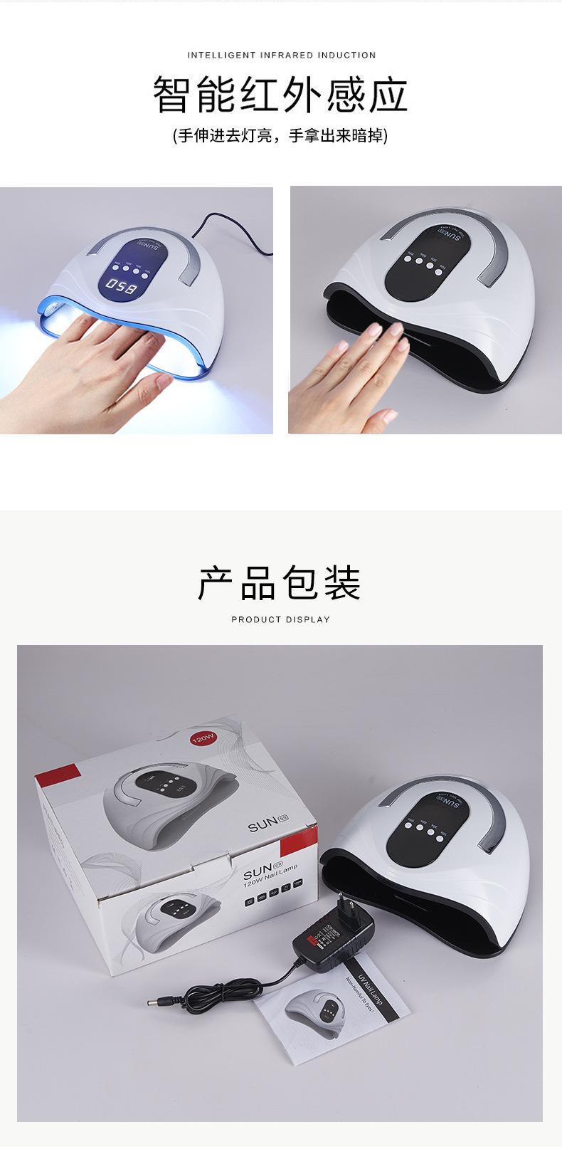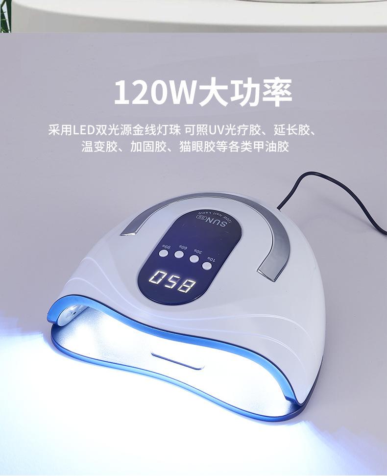 Lámpara de Uñas Transfronteriza 120W Lámpara de Fototerapia de Alta Potencia Lámpara UV Secado Rápido Sensor Inteligente Lámpara para Hornear Uñas Máquina de Uñas Venta al por Mayor
