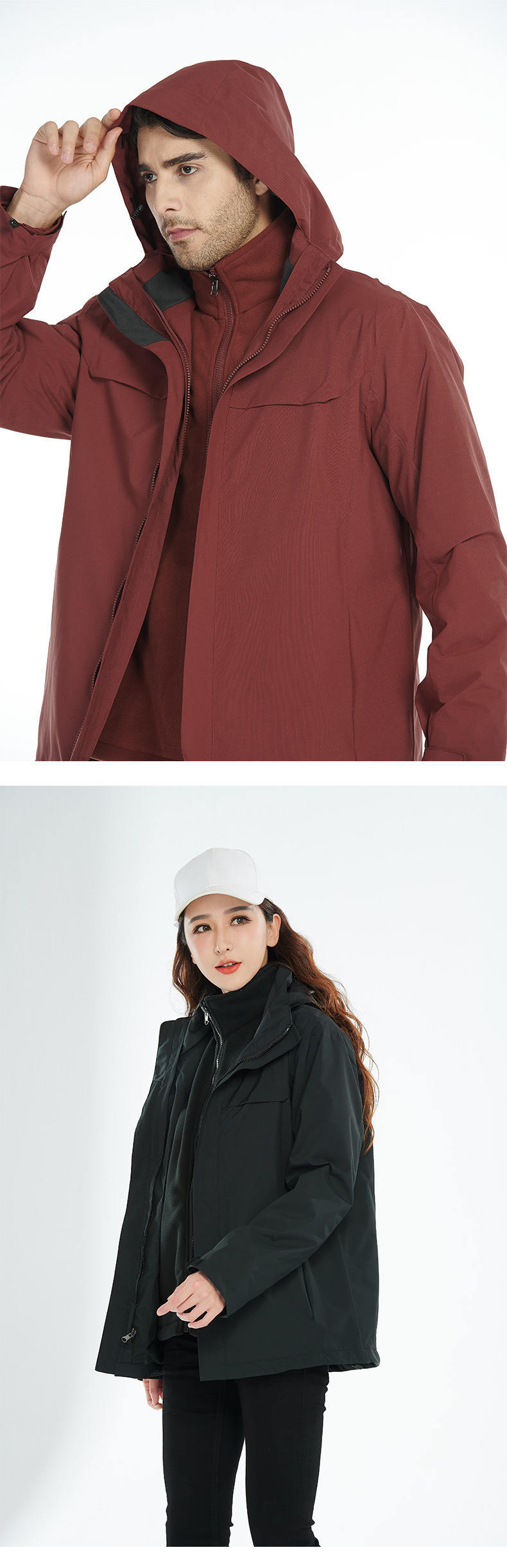 Chaqueta Tres en Uno con Forro Polar Polar para Hombre y Mujer Personalizada Impermeable para Exterior Ciclismo Viaje Aventura con Logo Impreso