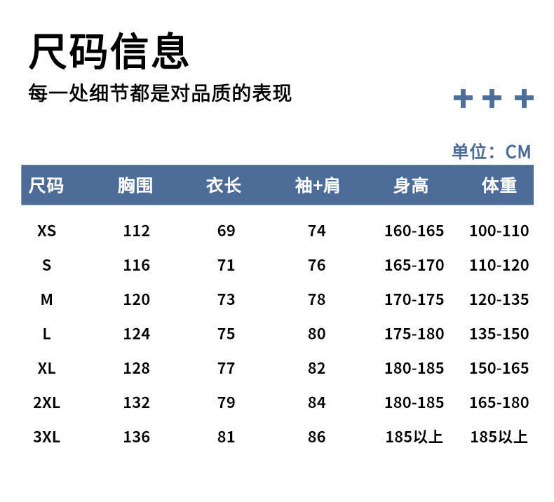 XS, S, M, L, XL, 2XL, 3XL