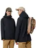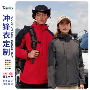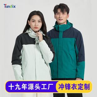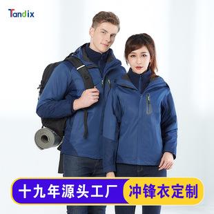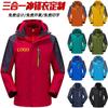 | Chaqueta de exterior a juego con el color y el logotipo impreso personalizado, ropa de trabajo gruesa, resistente al agua y al viento, chaqueta tres en uno desmontable. |