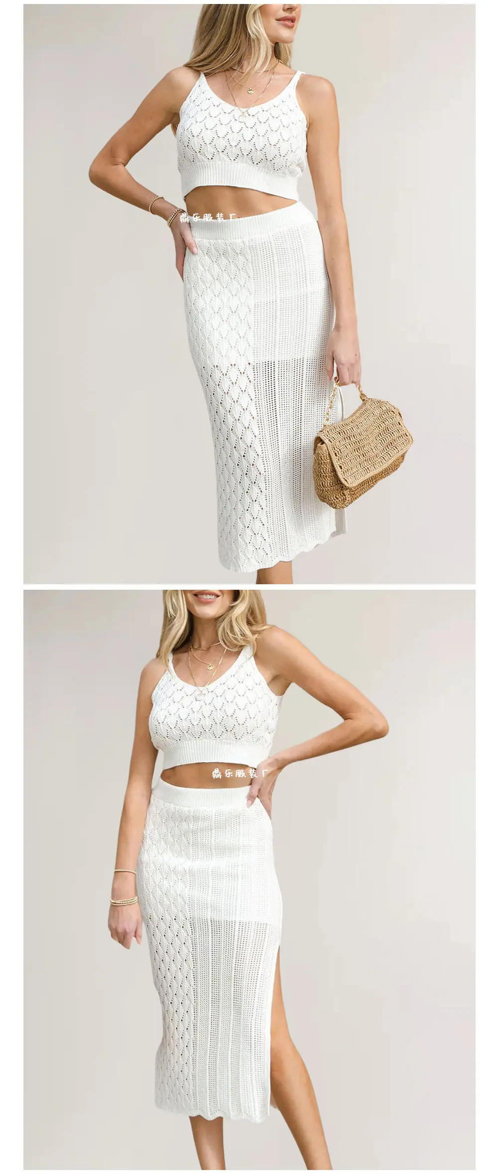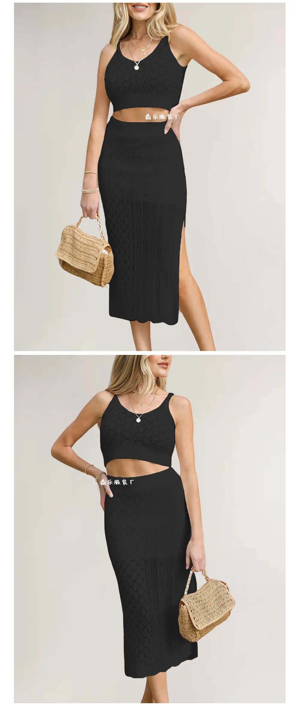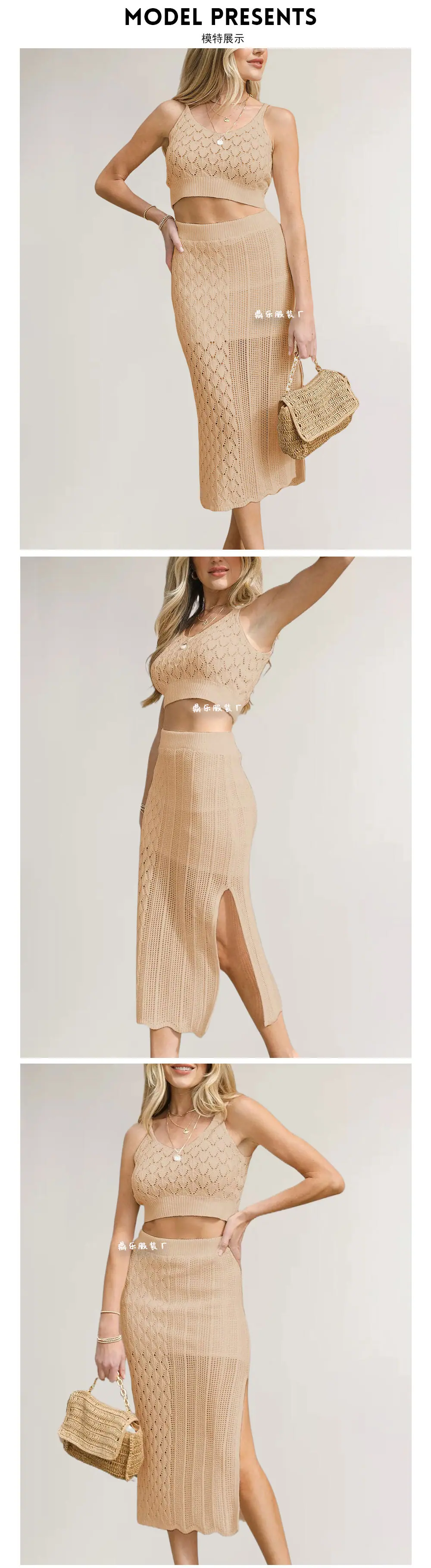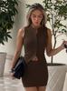 2026 Ropa de Mujer Europea y Americana de Amazon Más Vendida Verano Nuevo Color Sólido Acolchado Set de Dos Piezas Camiseta sin Mangas Vestido con Abertura