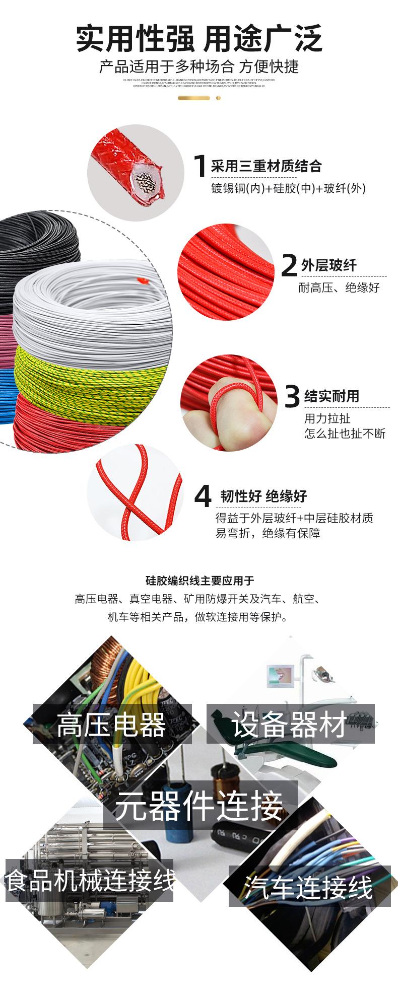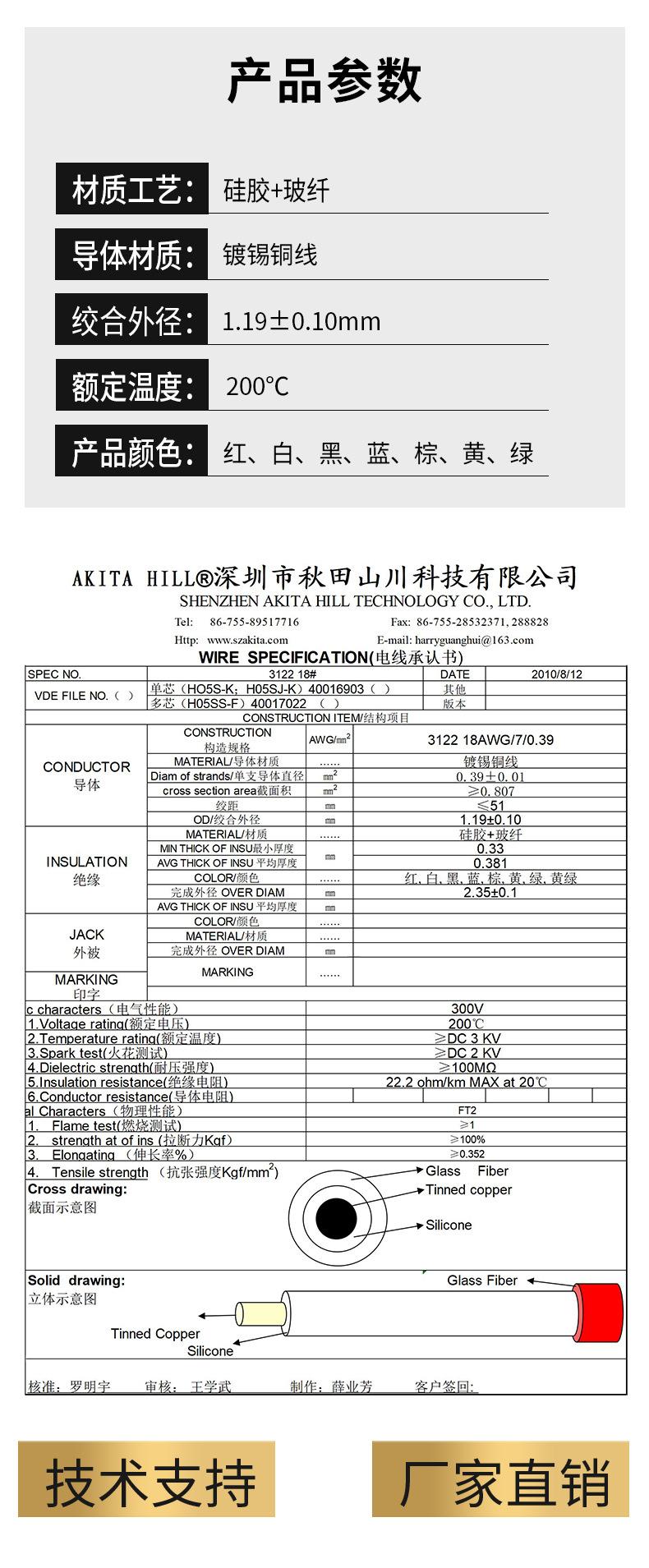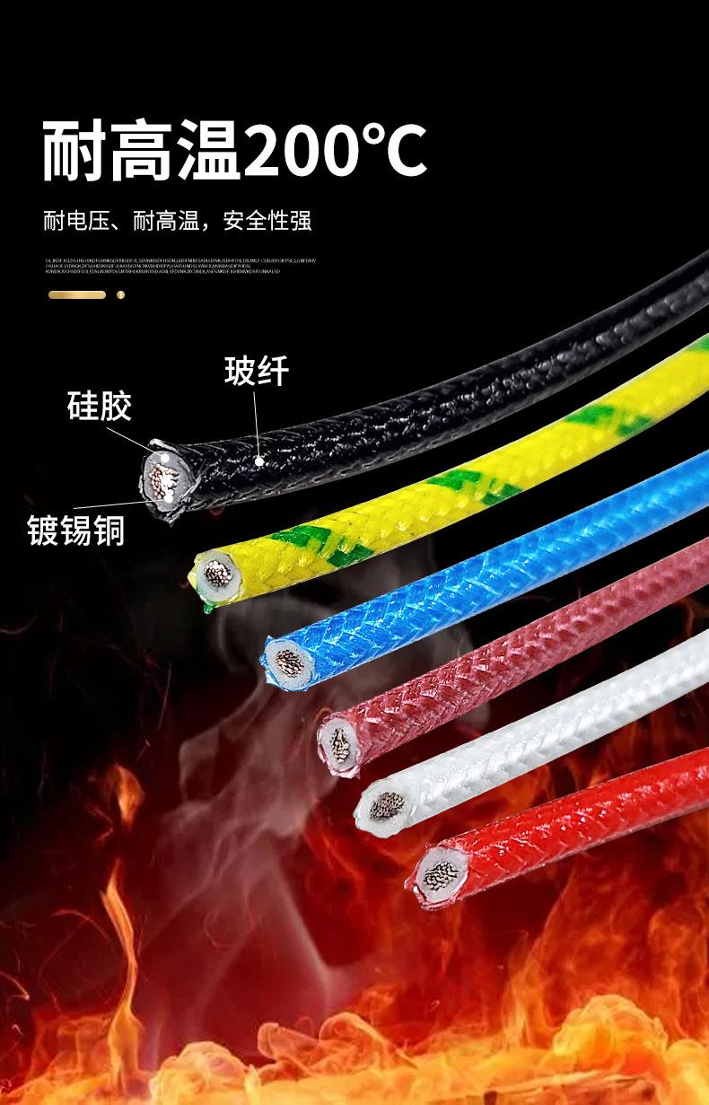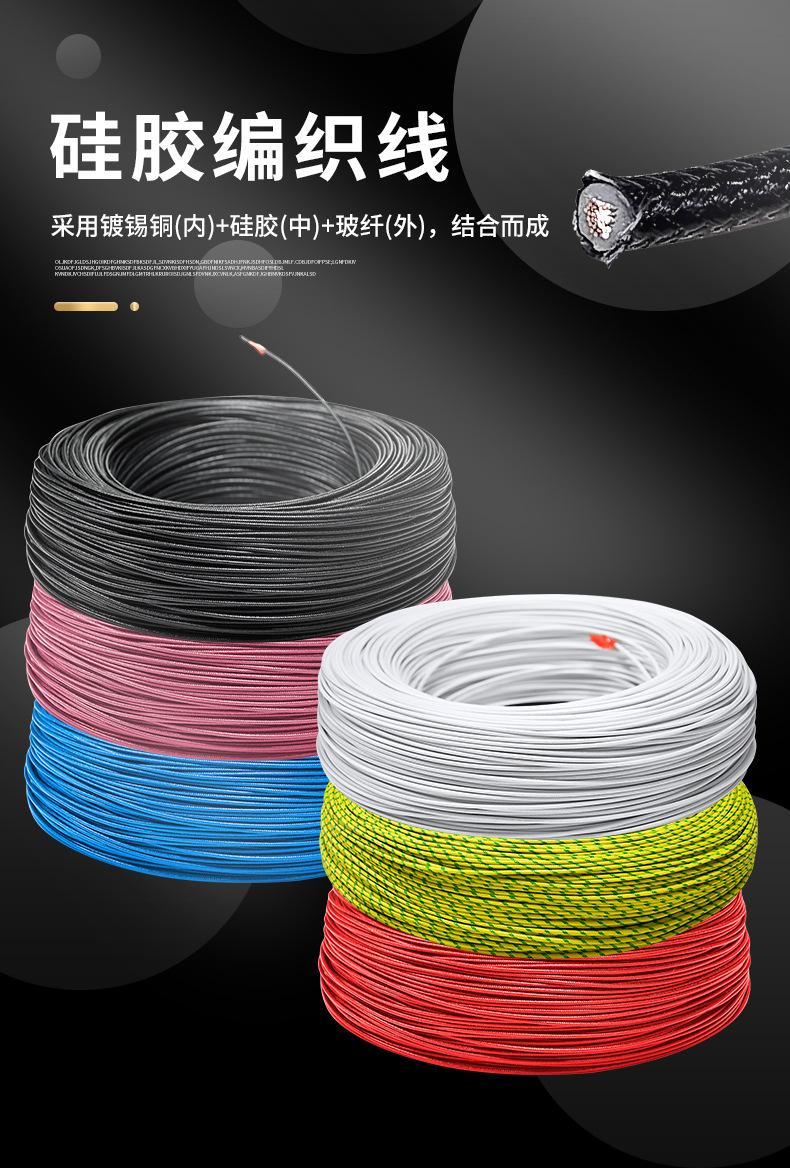 Cable trenzado de silicona 3122, terminal de cable electrónico con aislamiento de caucho de silicona trenzado de fibra de vidrio de alta temperatura de 200 grados, estándar positivo