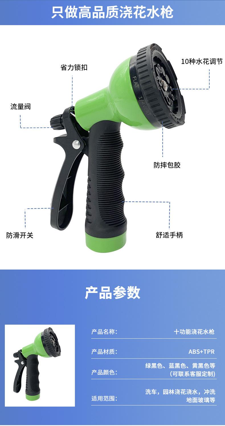 Venta directa de fábrica, pistola de agua para riego de jardín con 10 funciones, boquilla de riego, pistola de agua de alta presión, pistola de agua doméstica, pistola de agua para lavado de autos