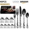 Vajilla de acero inoxidable con martillo de Amazon transfronterizo, juego de 24 cuchillos, tenedores y cucharas, vajilla occidental para 4 personas.