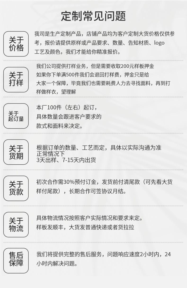 La fábrica de ropa Yangjie, ubicada en Shaxi, Zhongshan, vende principalmente camisetas de punto para hombre y mujer, polos de marca, sudaderas de moda, ropa de pesca, chaquetas cortavientos, camisas hawaianas, camisetas de béisbol, uniformes deportivos, ropa deportiva y ropa de yoga. Nuestro taller de producción cuenta con una superficie de 1400 metros cuadrados y cuenta con más de 60 empleados. Nuestra fábrica de origen cuenta con amplia experiencia en la colaboración con numerosas marcas de ropa, especializándose en pedidos de comercio exterior y colaborando con numerosas marcas extranjeras. Le invitamos a enviarnos planos y muestras para su personalización. Ofrecemos servicios de procesamiento OEM. El pedido mínimo para la personalización es de 50 piezas. Le invitamos a visitar la fábrica. Los precios en línea son solo de referencia. El precio final se determina según el estilo del producto y la cantidad de producción.