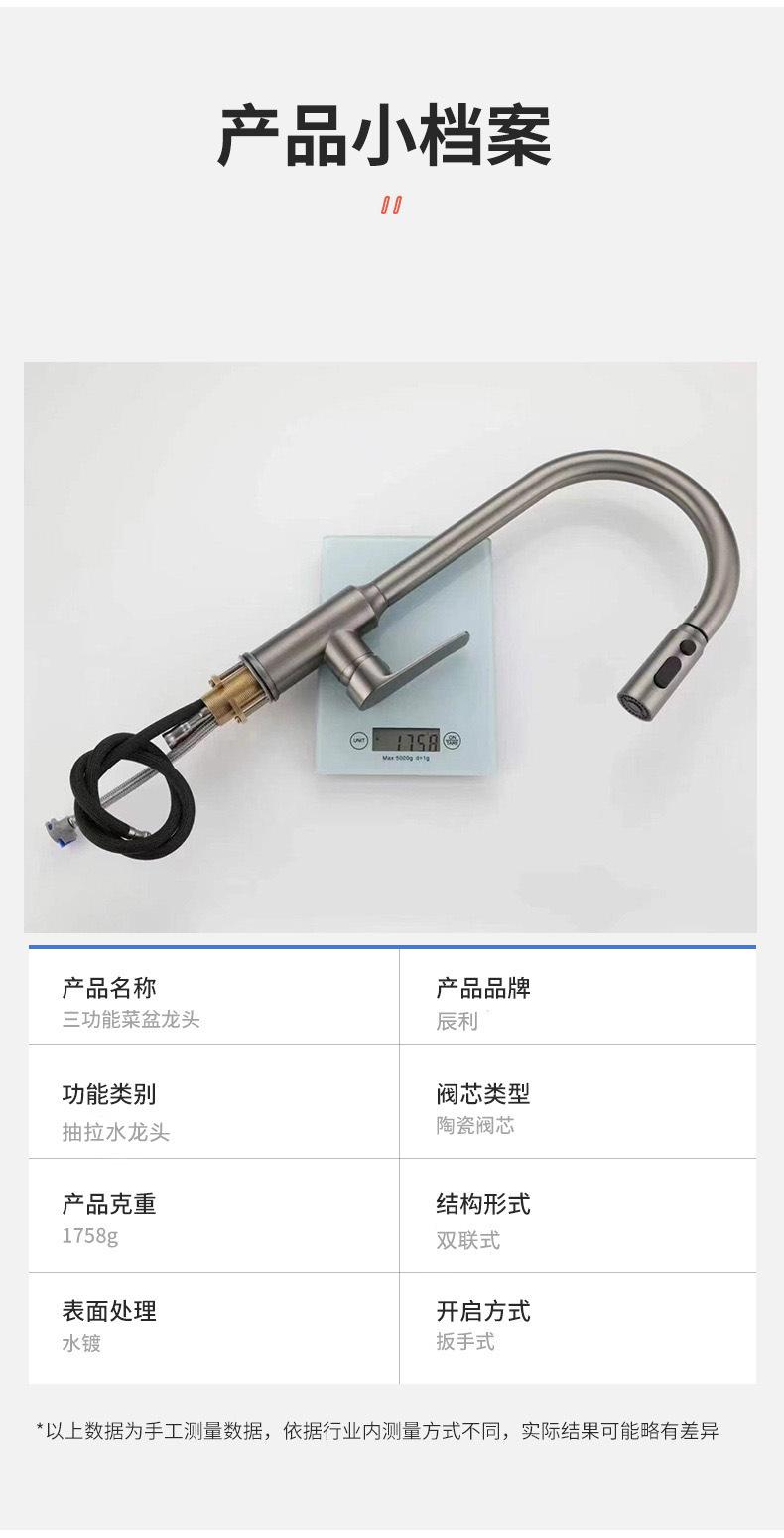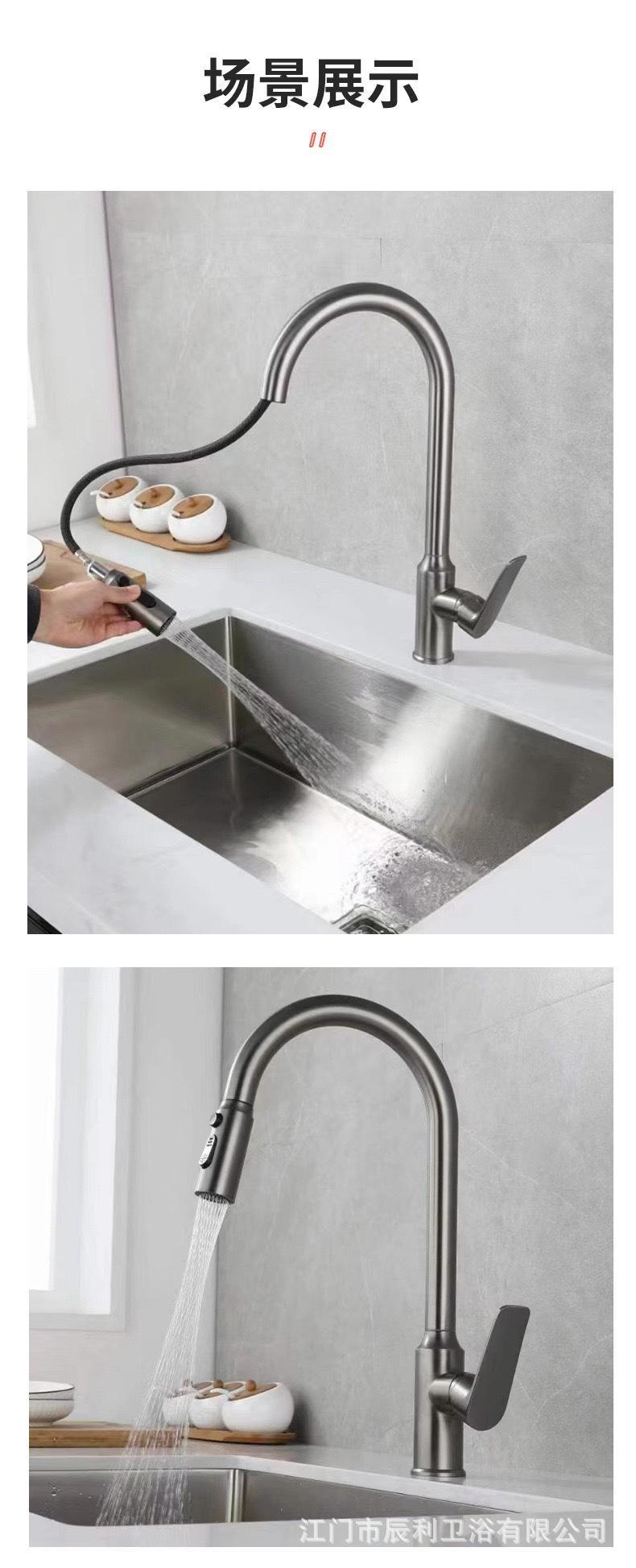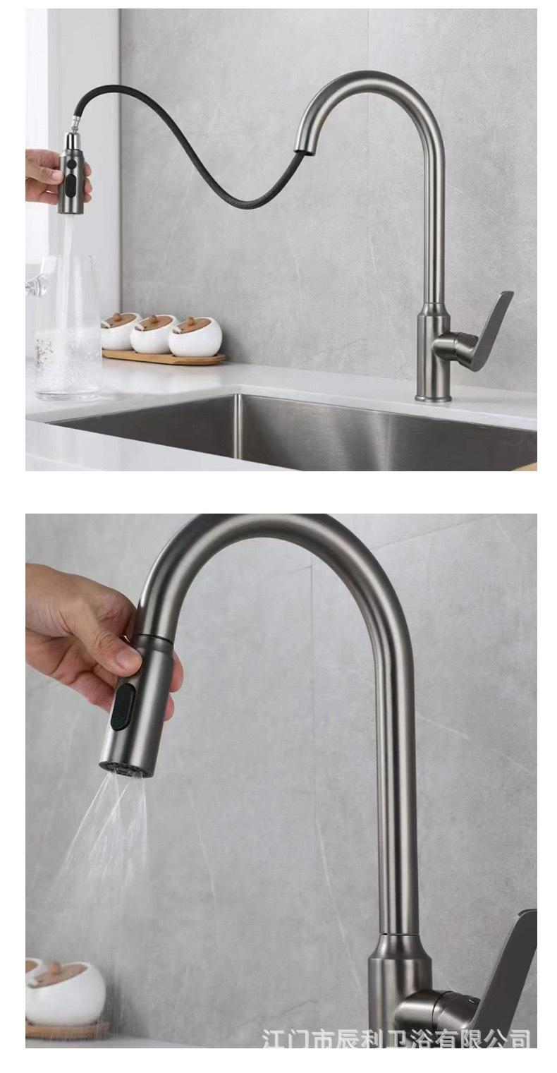 Grifo extraíble para fregadero de cocina de acero inoxidable con tres funciones, con revestimiento de PVC para lavar platos, resistente a salpicaduras y arañazos.