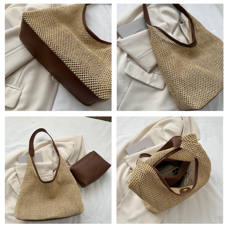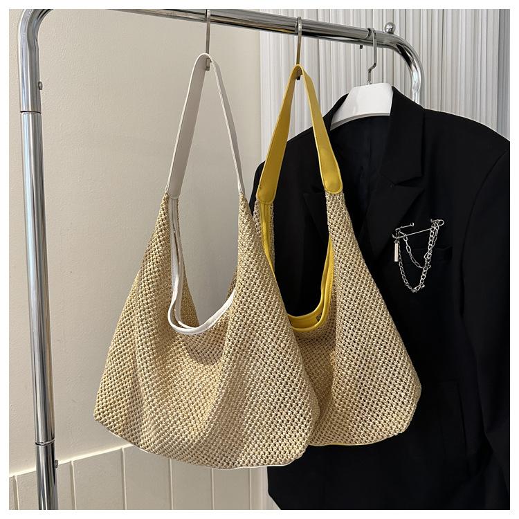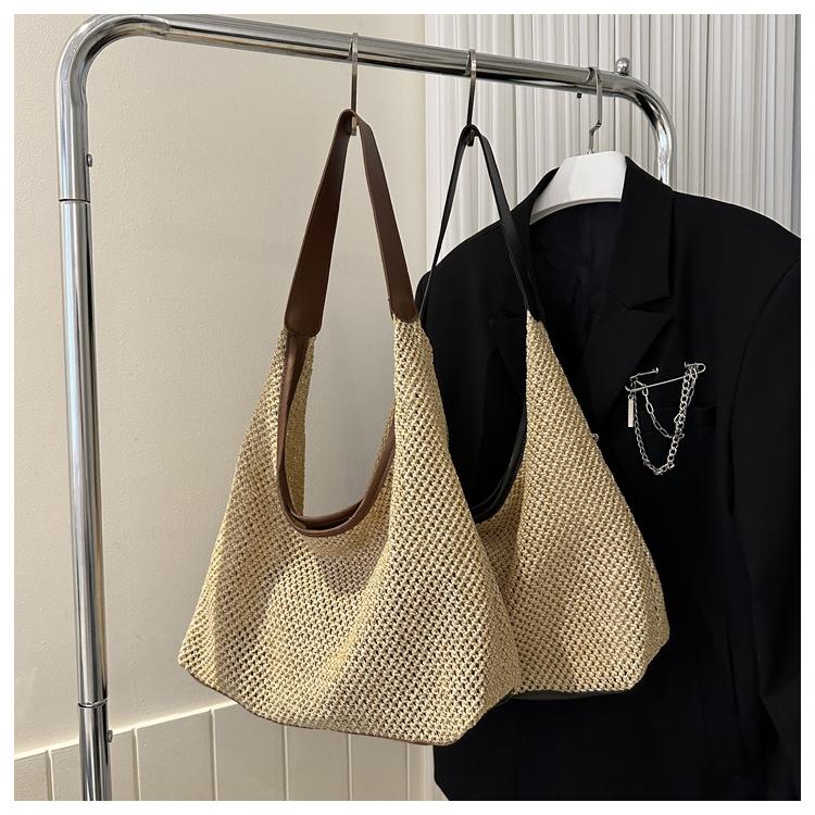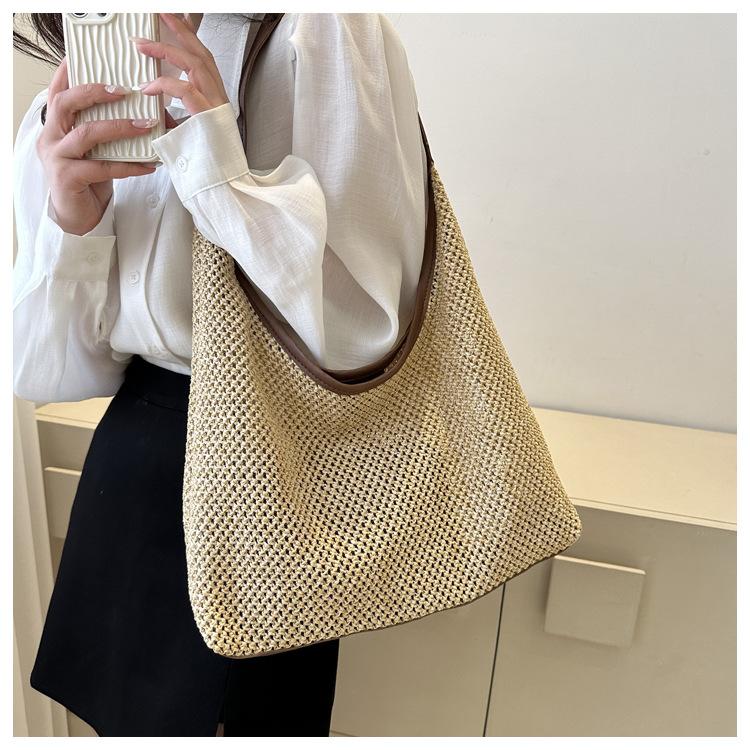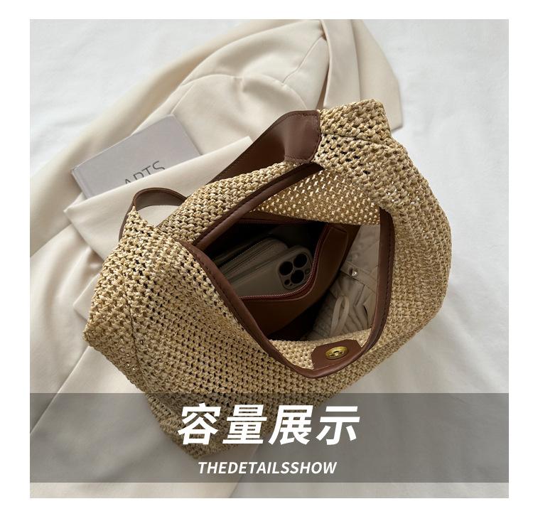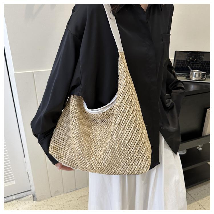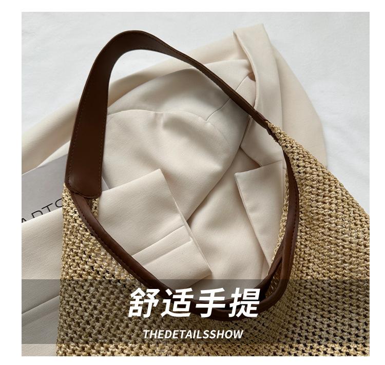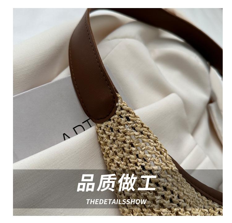 Bolso tejido portátil popular de verano para mujer, bolso pequeño de hombro de estilo occidental moderno, viaje a la orilla del mar, bolso de paja de playa