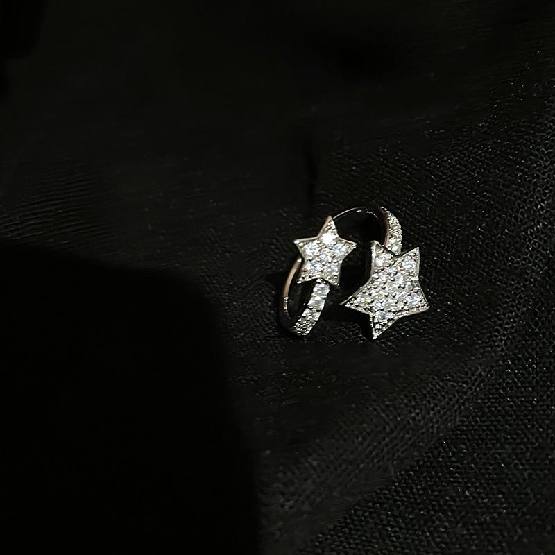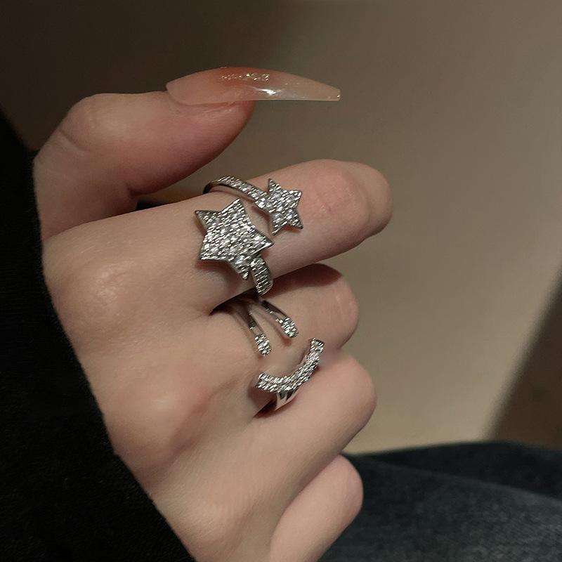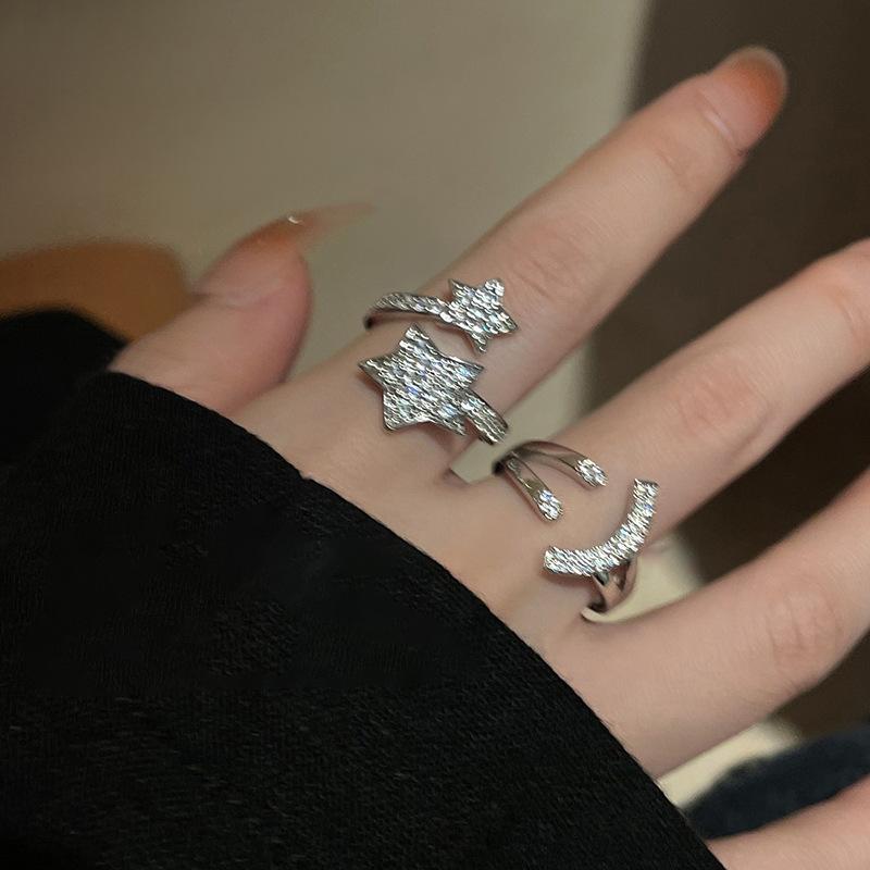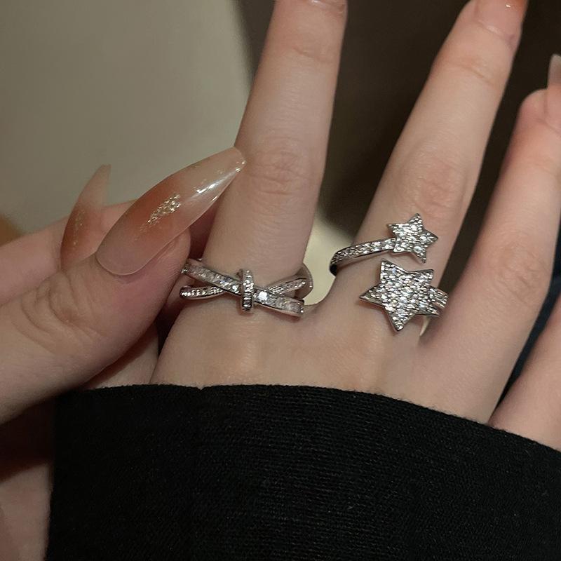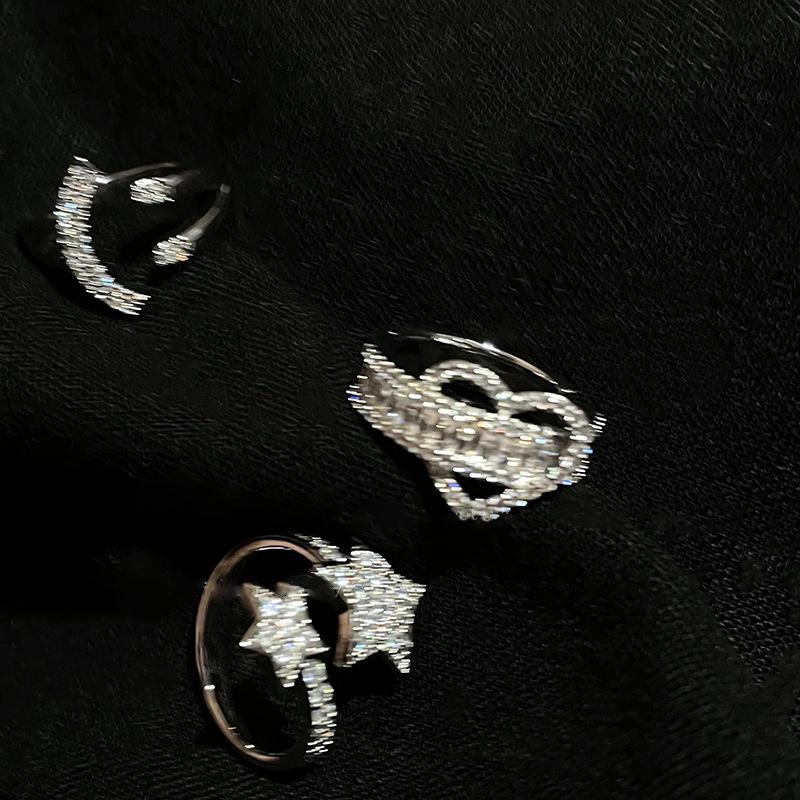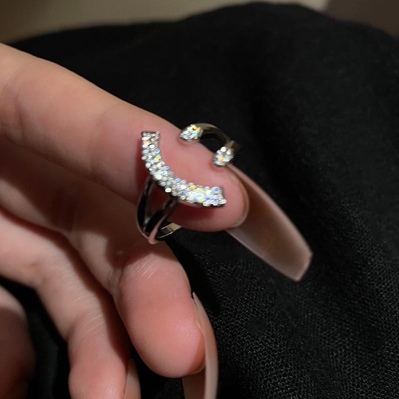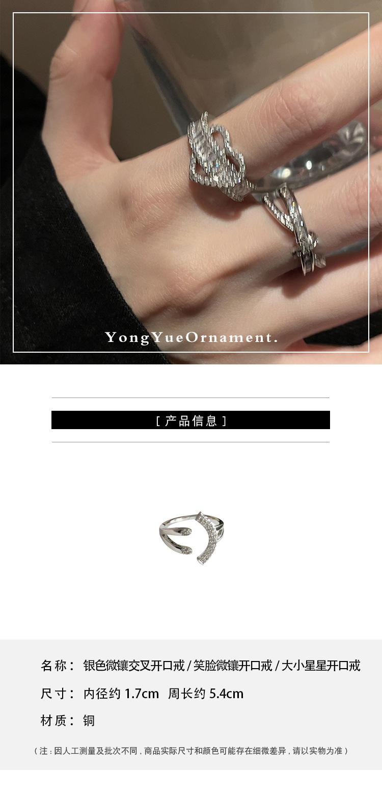 silver micro-inlaid cross open ring, Smiling face micro-inlaid opening ring