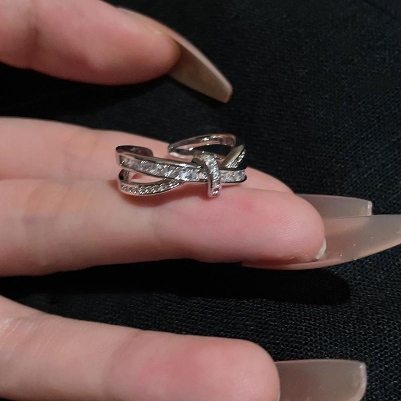 Anillo de circonita con cruz de amor para mujer, diseño de nicho, anillo abierto ligero de lujo.