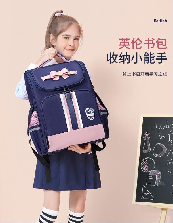 Mochila escolar para estudiantes de primaria, estilo británico, para niñas de 1.º a 6.º grado, con reducción de carga y protección para la columna vertebral, mochila escolar para niños.