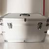 Material: Marco de aleación de aluminio; madera contrachapada engrosada; marco de hierro soldado dentro de la caja; almohadilla EVA a prueba de golpes; rodillos inferiores; tiras de aluminio reforzado alrededor de la caja; cierre de mariposa; nueva manija de cuello, etc.