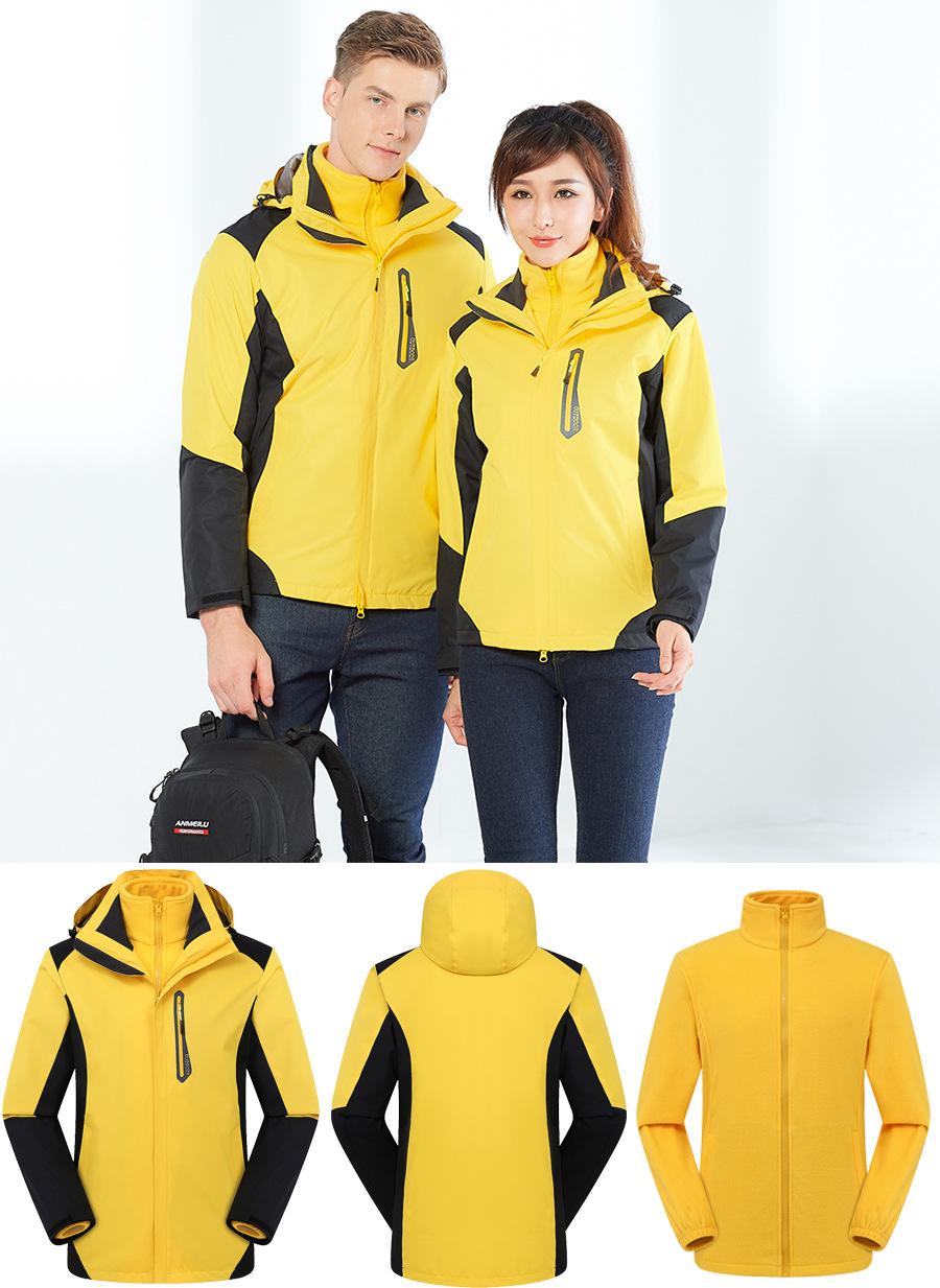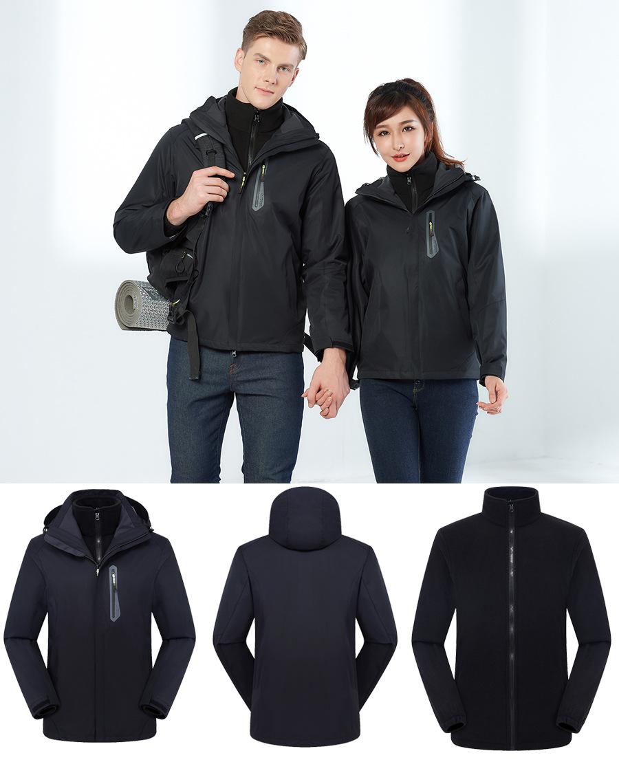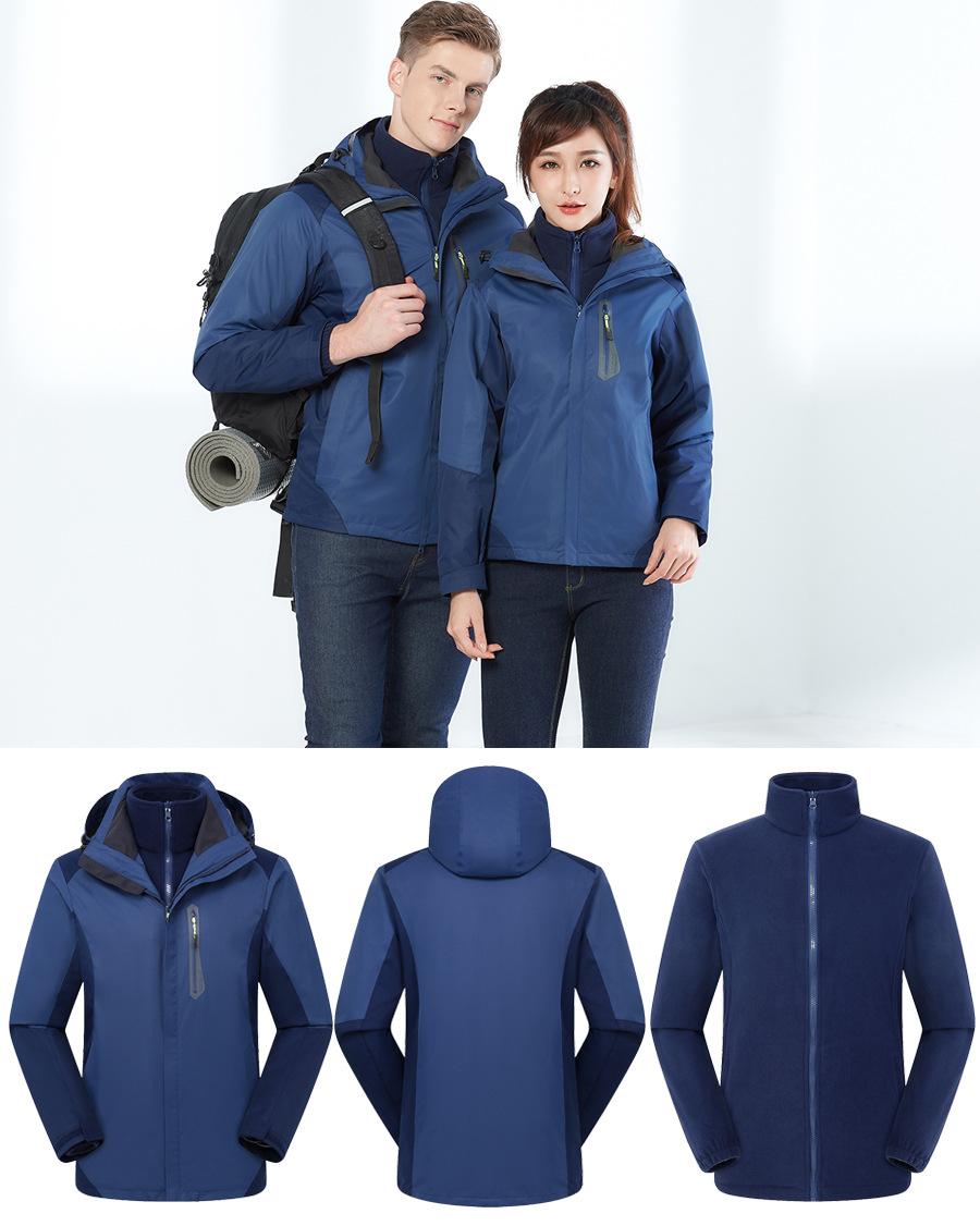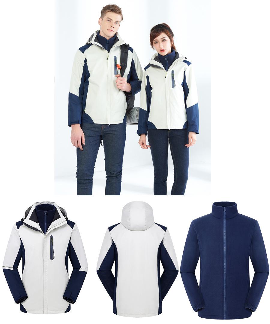 Conjunto de dos piezas para exteriores de chaquetas tres en uno para hombre y mujer, ropa de trabajo cálida y abrigadora, ropa de esquí removible con estampado personalizado