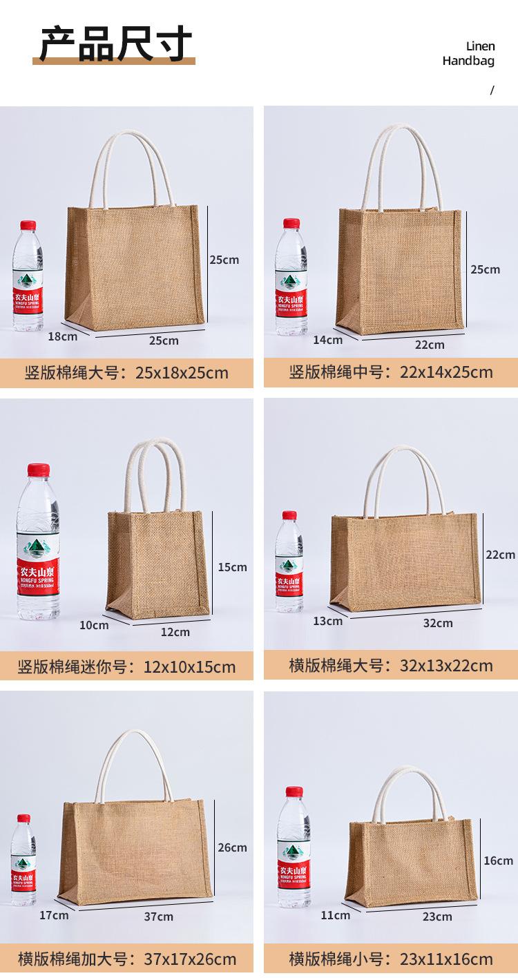 Bolsa tote de lino ecológica de fábrica, bolsa de compras de yute, versión completa con logo, bolsa de regalo publicitaria con película