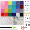 60,000 piezas de cuentas de semillas de vidrio de 2 mm, cuentas de letras, cuentas de corazón, cuentas de carita sonriente, cuentas de ojo turco, conchas blancas, diferentes estilos de accesorios dorados, anillos de salto, hebillas, cierres de langosta, tijeras, pinzas, agujas para enhebrar e hilo de cristal