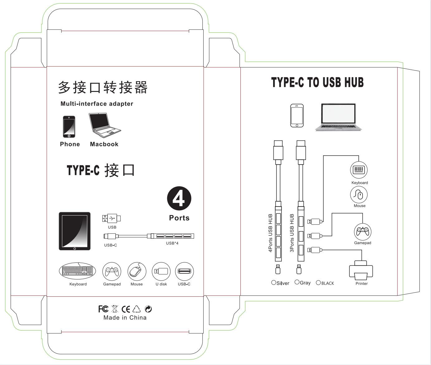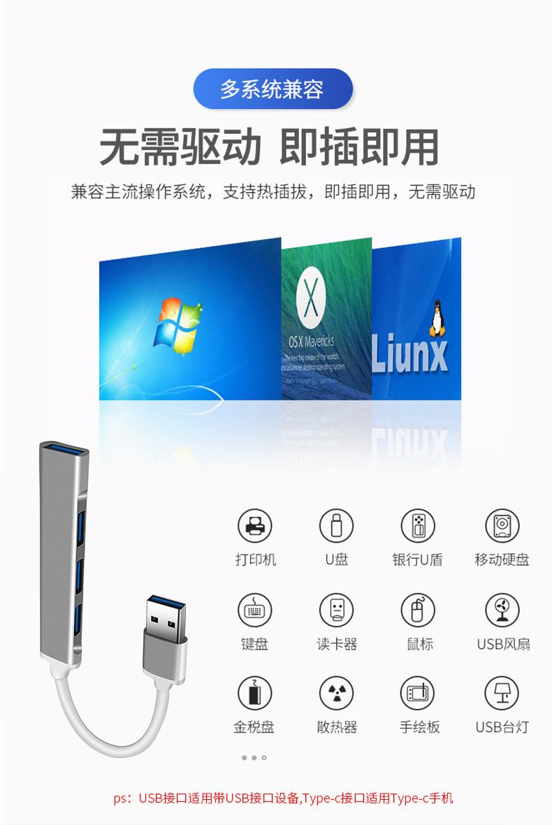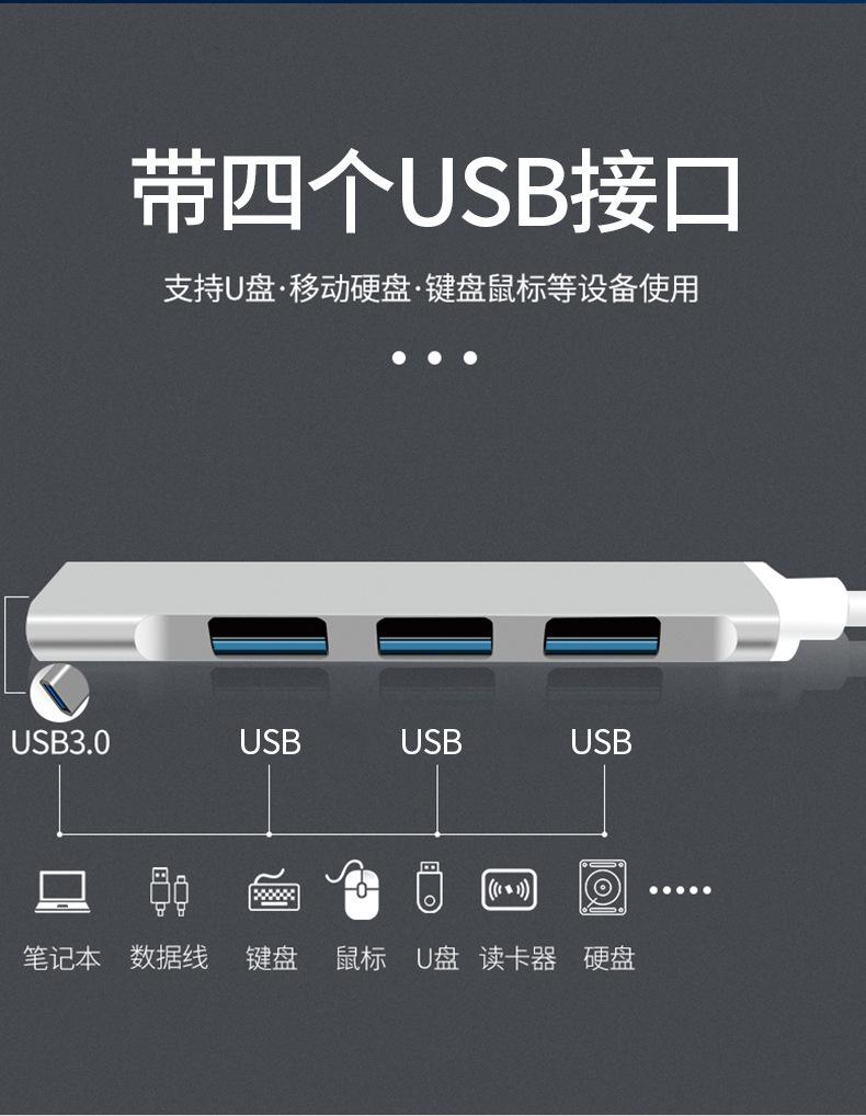 Dock de Expansión Tipo C a Cuatro USB 3.0 Computadora Teléfono Móvil Convertidor Otg Hub Accesorios Digitales
