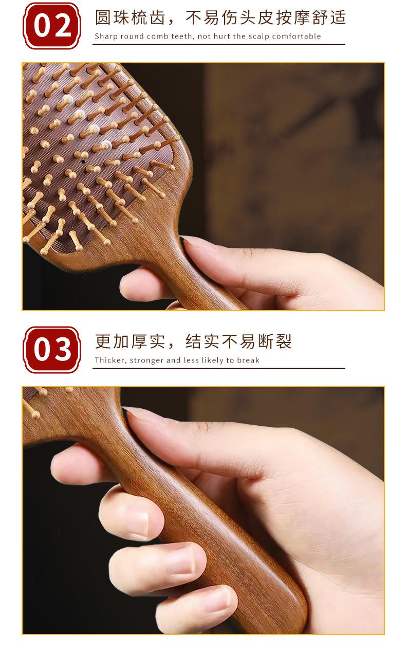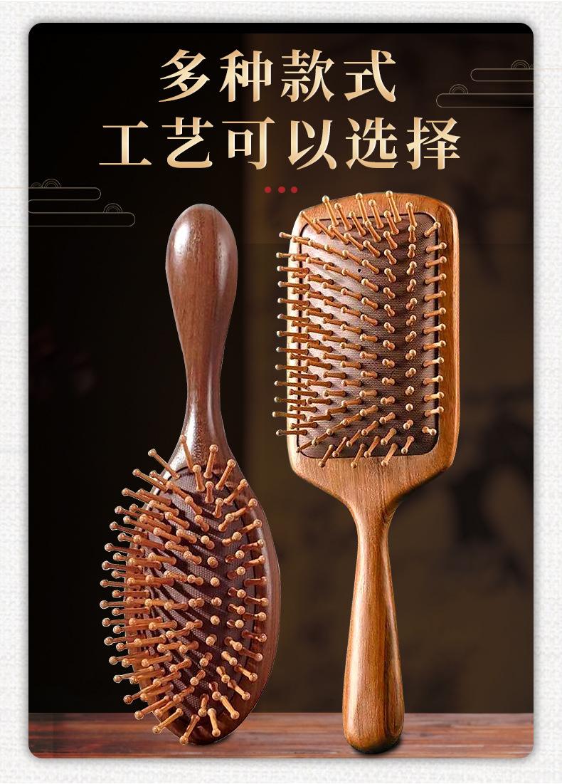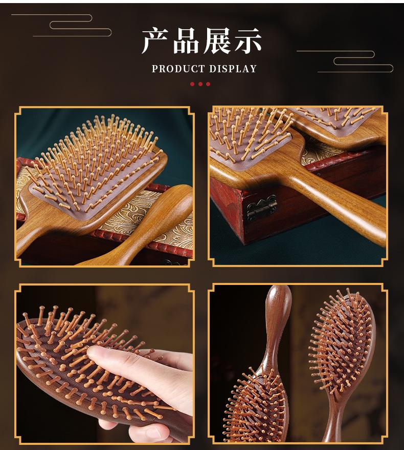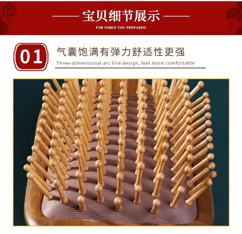 Golden green sandalwood air bag massage comb, Golden green sandalwood carbonized bamboo tooth large square pla...