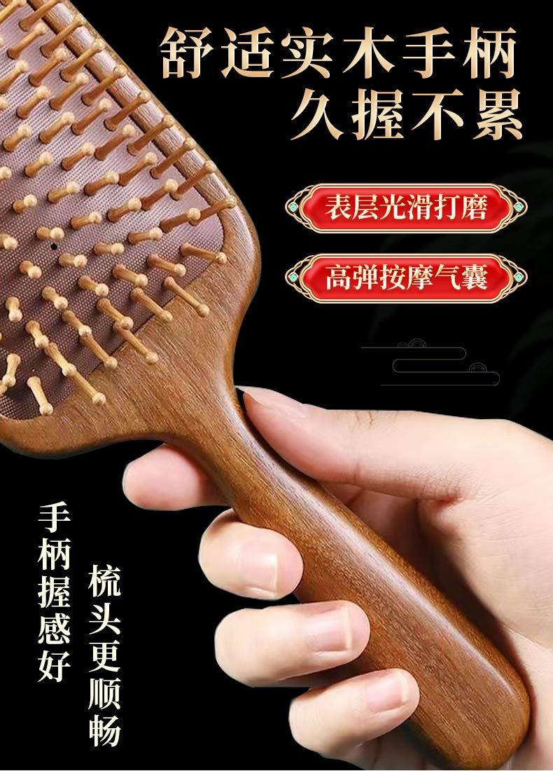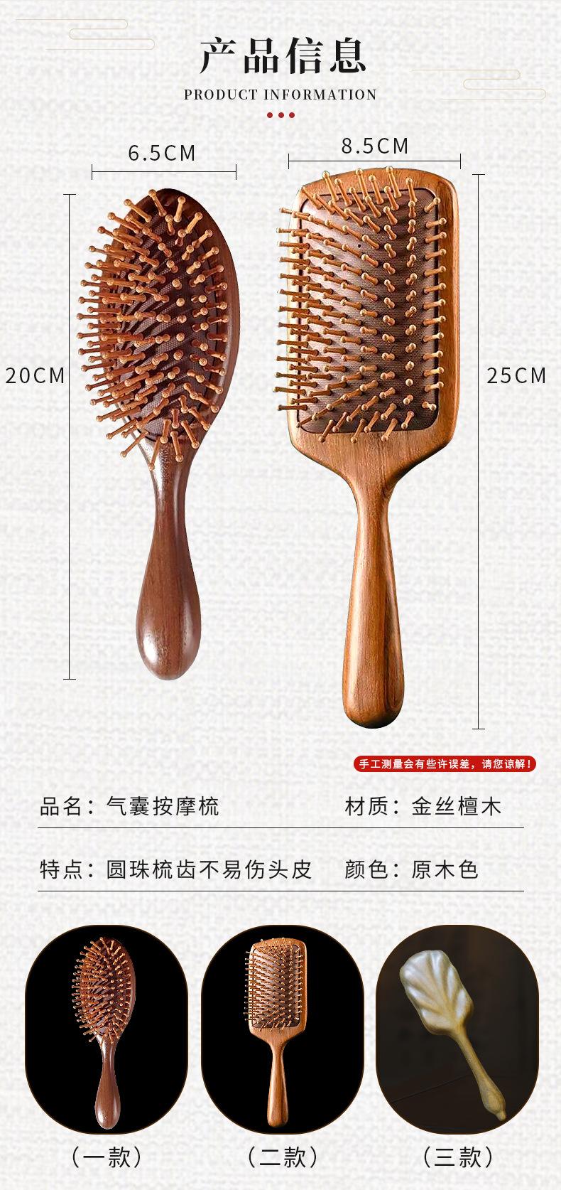 Compra Peine de cojín de aire, peine de bolsa de aire, peine de masaje de madera de sándalo dorado, peine para cabello largo y corto, peine de masaje para cabeza de masaje meridiano. al por mayor en Joom.pro