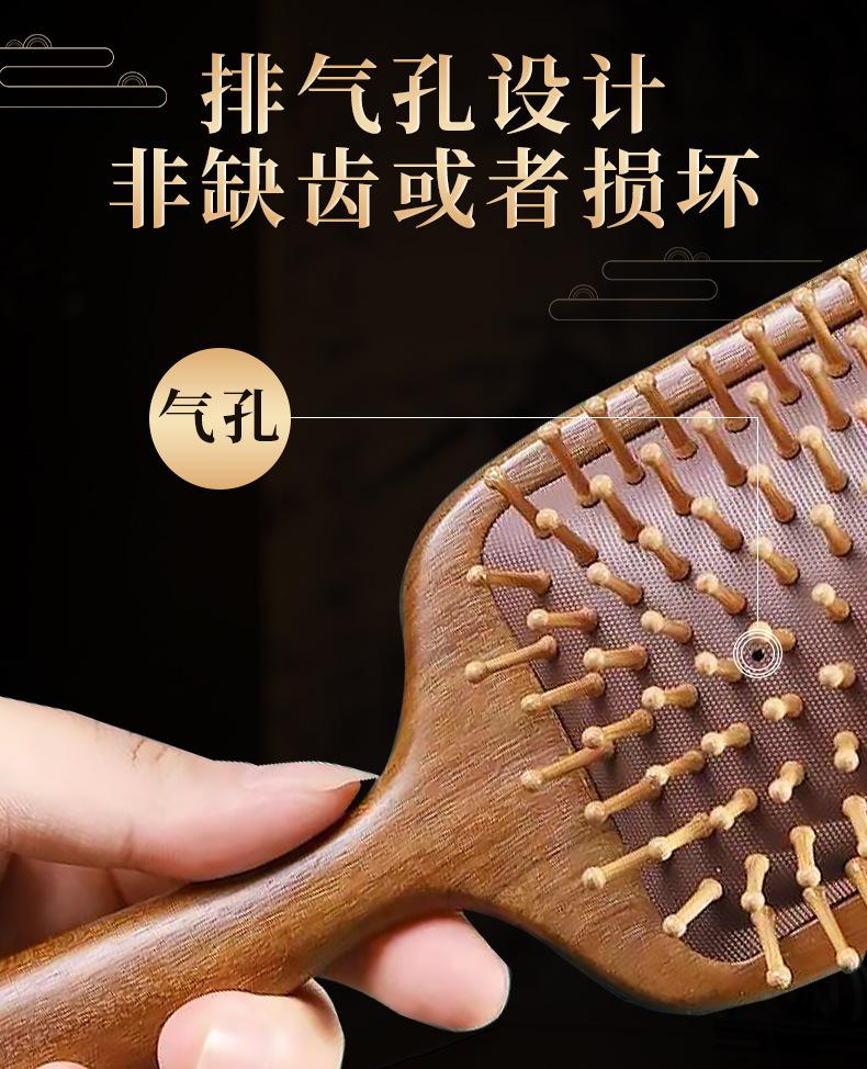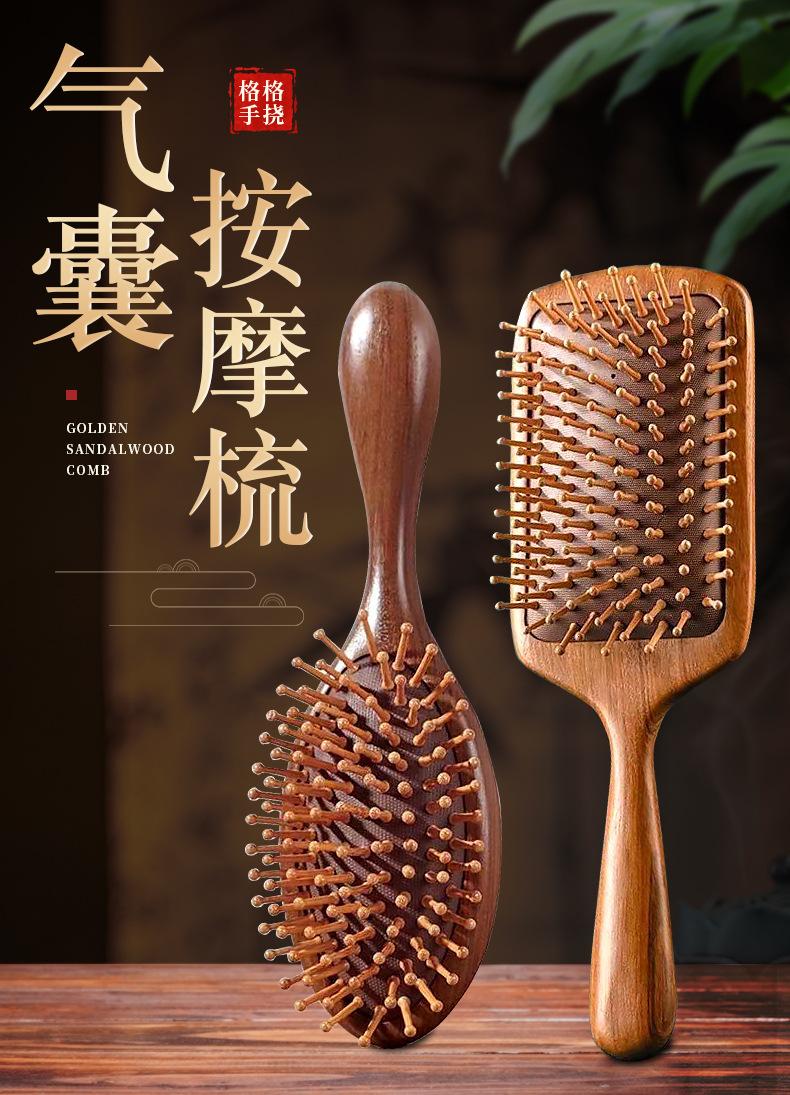 Peine de cojín de aire, peine de bolsa de aire, peine de masaje de madera de sándalo dorado, peine para cabello largo y corto, peine de masaje para cabeza de masaje meridiano.