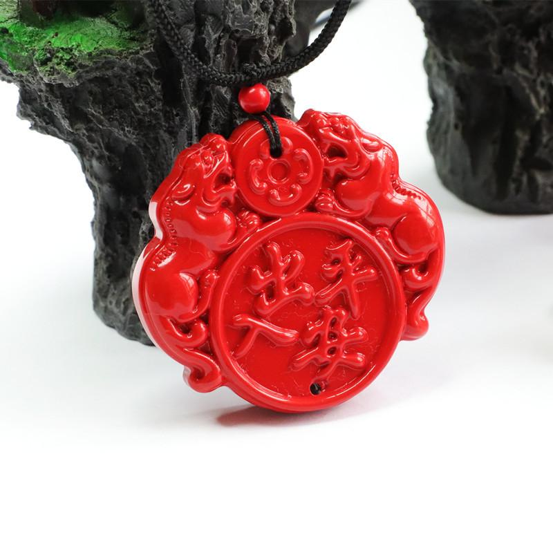Cinnabar Double Pixiu Enters Peace Pendant Double-sided Carving (ZS2101917)