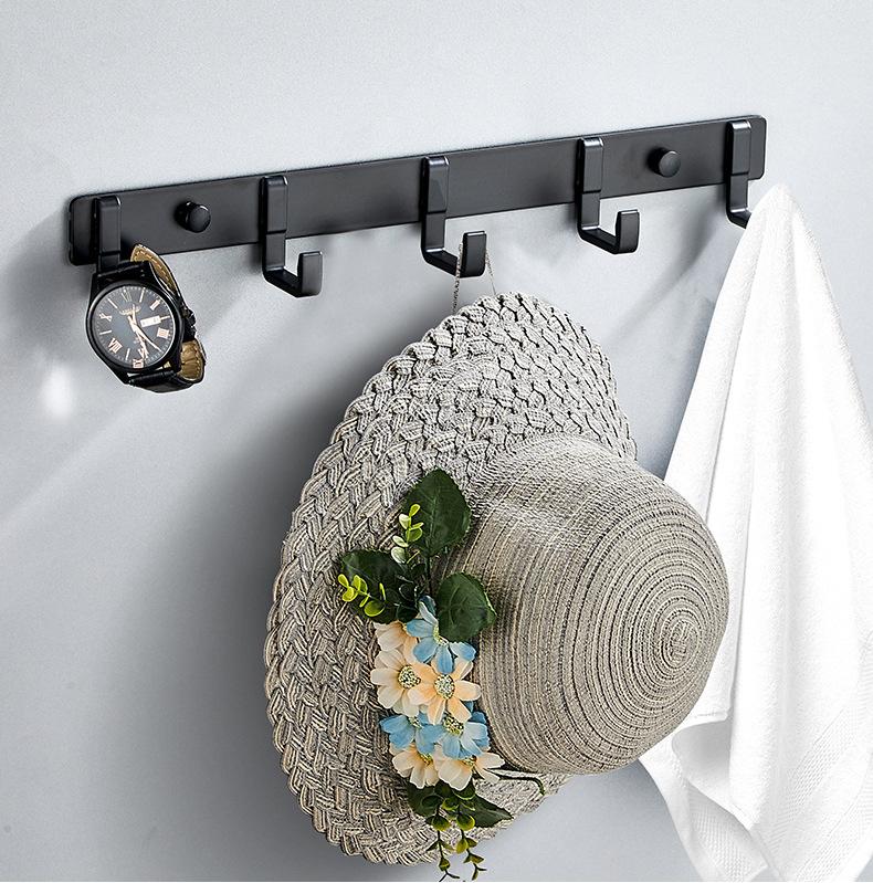 Gancho de aluminio negro con espacio para toallas, gancho sin costuras para baño, cocina, gancho individual para ropa, gancho de almacenamiento sin perforaciones