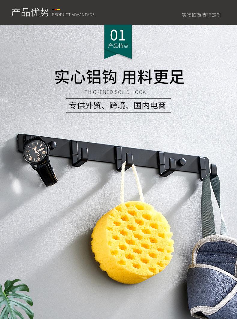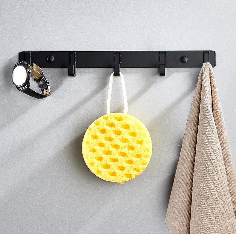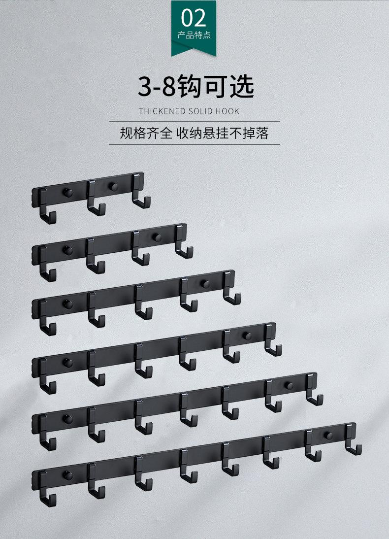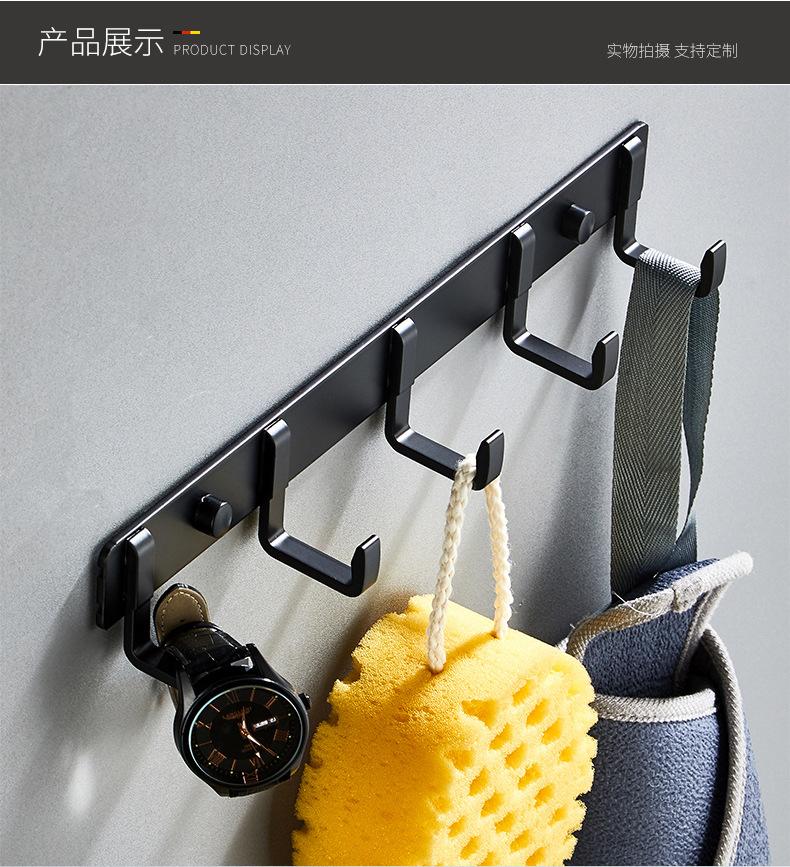 Compra Gancho de aluminio negro con espacio para toallas, gancho sin costuras para baño, cocina, gancho individual para ropa, gancho de almacenamiento sin perforaciones al por mayor en Joom.pro