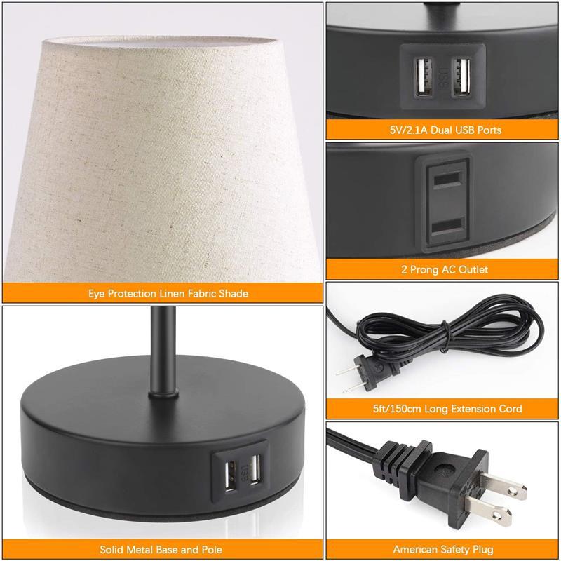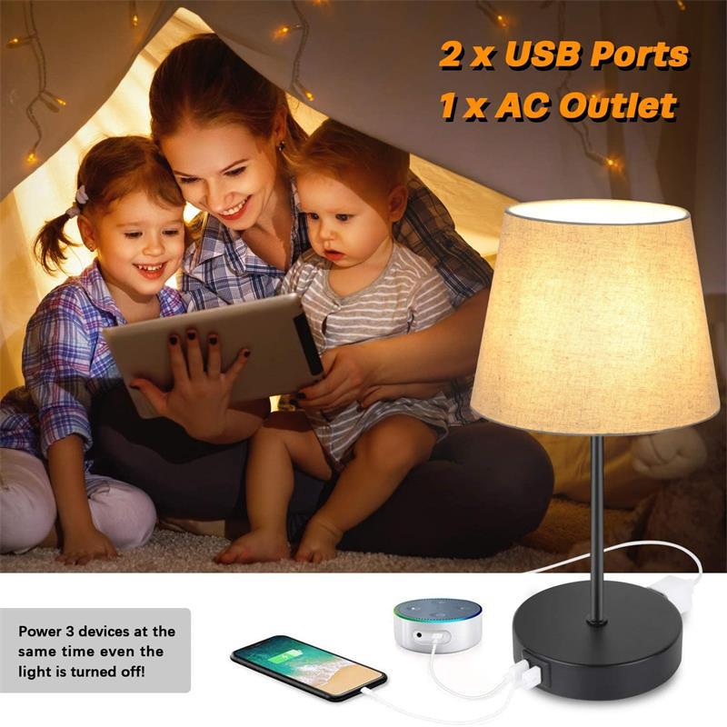 Lámpara de mesa explosiva dormitorio mesita de noche luz nocturna LED enchufable táctil brillo ajustable carga USB ebay