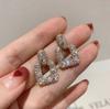 Pendientes de circonita de cristal de grado AAA, pendientes de gancho con forma de palabra 925, chapados en platino, joyería coreana Joker simple, fabricantes de fuentes