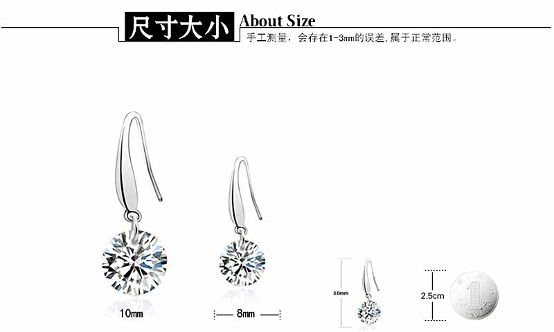 8mm White Zirconium Ear Hook Platinum Plated, 10mm White Zirconium Ear Hook Platinum Plated, 8mm Crystal Zirco...