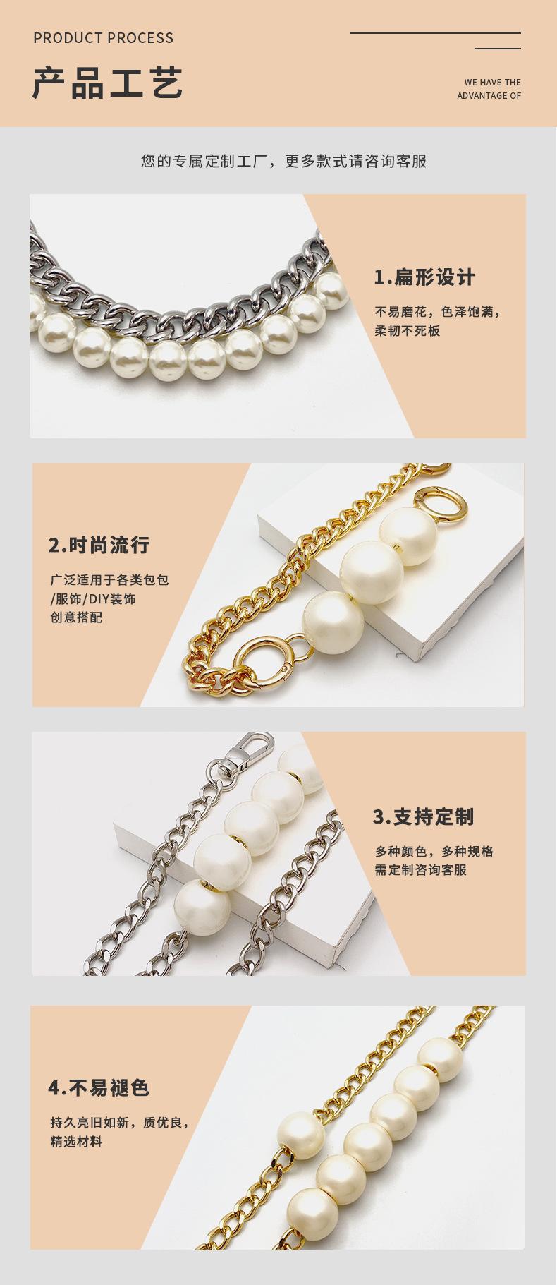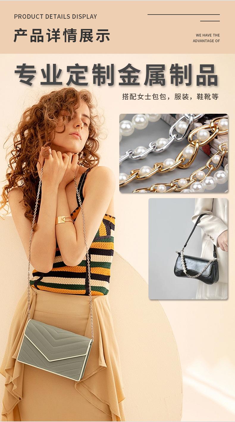 Cadena de perlas transfronterizas, accesorios de hardware, correa de hombro diagonal de mano, cadena de bolso, correa de bolso de metal para mujer