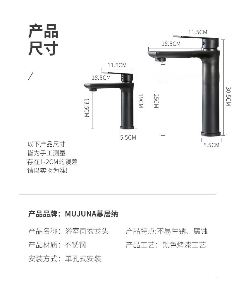 Black-single hole hot and cold faucet -19cm high, Black-single hole hot and cold faucet height -30.5cm high, E...